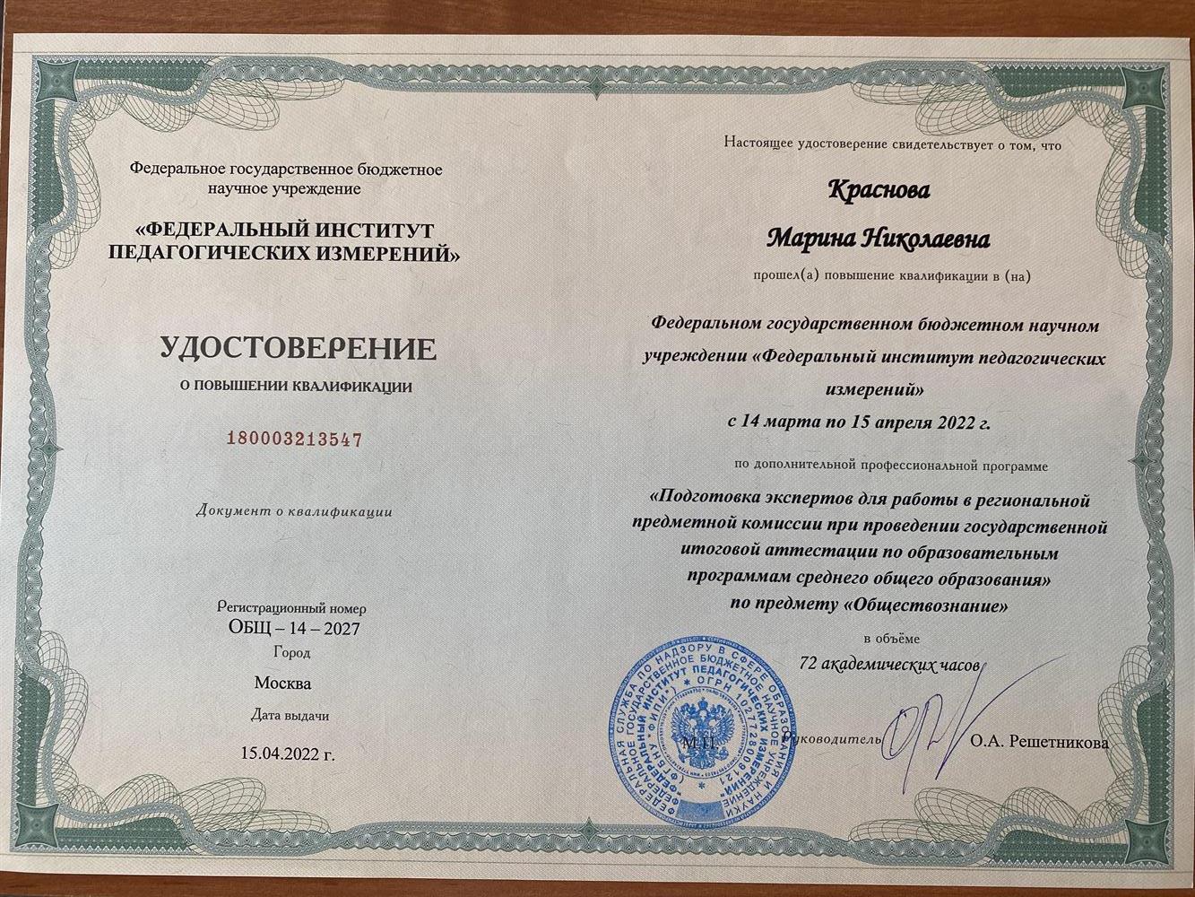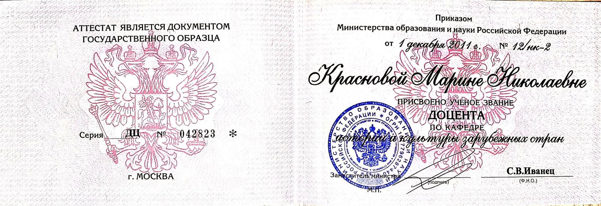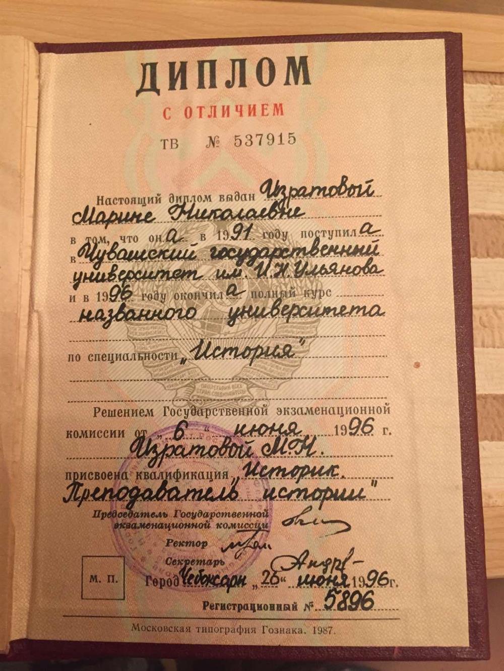 Квалификация - историк, преподаватель истории. Диплом с отличием.