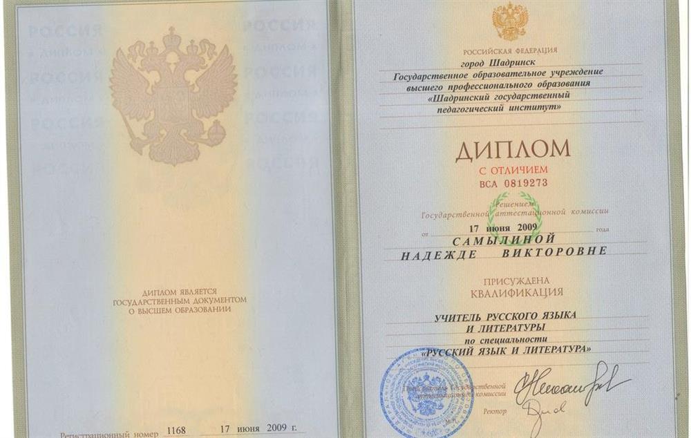 Квалификация - учитель русского языка и литературы. Диплом с отличием.