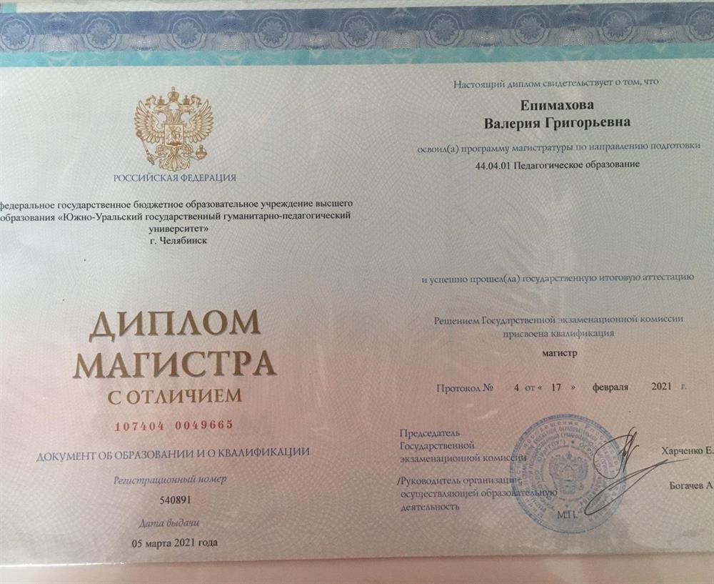 Магистратура. Диплом с отличием.