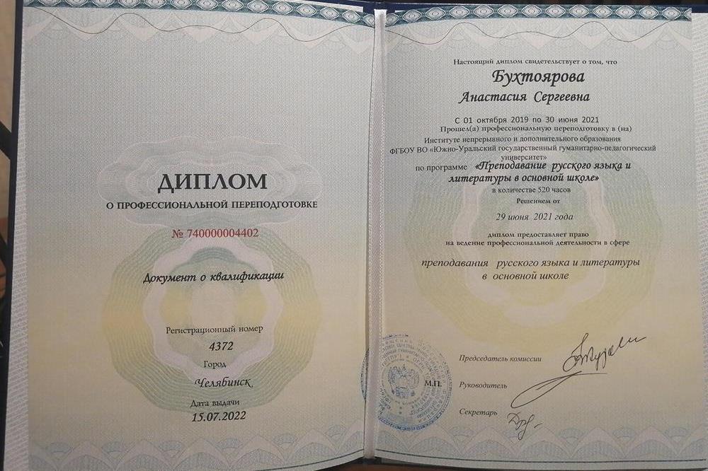 ВПР/ ОГЭ: ко мне обращались с просьбой сдать на минимальный проходной балл, но всегда сдавали не меньше, чем твердая «4». Подготовка к школе: обучение чтению и письму с 0, обучение не только технике чтения, но и пониманию и анализу прочитанного. Образование – высшее педагогическое: ЮУрГГПУ 2018-2022 – учитель начальных классов, ЮУрГГПУ 2019-2021 – курсы переподготовки на учителя русского языка и литературы. Как проходят занятия: перед первым занятием высылаю тест для проверки уровня знаний. На занятиях разбираем темы по порядку, делая упор на непонятные для ребенка темы, прорешиваем типовые задания по каждой теме. Теория доступна для школьников, обычно в формате схем, таблиц, списков. Иногда теорию даю в готовых печатных вариантах – памятках. Раз в 2 месяца провожу пробники для вычисления прогресса. По желанию родителей каждое занятие/ раз в неделю/ раз в месяц высылаю отчет о проведенных занятиях: выполнение домашних заданий, что проходили на занятиях, какие решали задания, уровень понимания программы и т.д. Перед занятиями высылаю договор-памятку с подробно описанными правилами работы. Занятия проходят по адресу Академика Королева 8 или дистанционно.