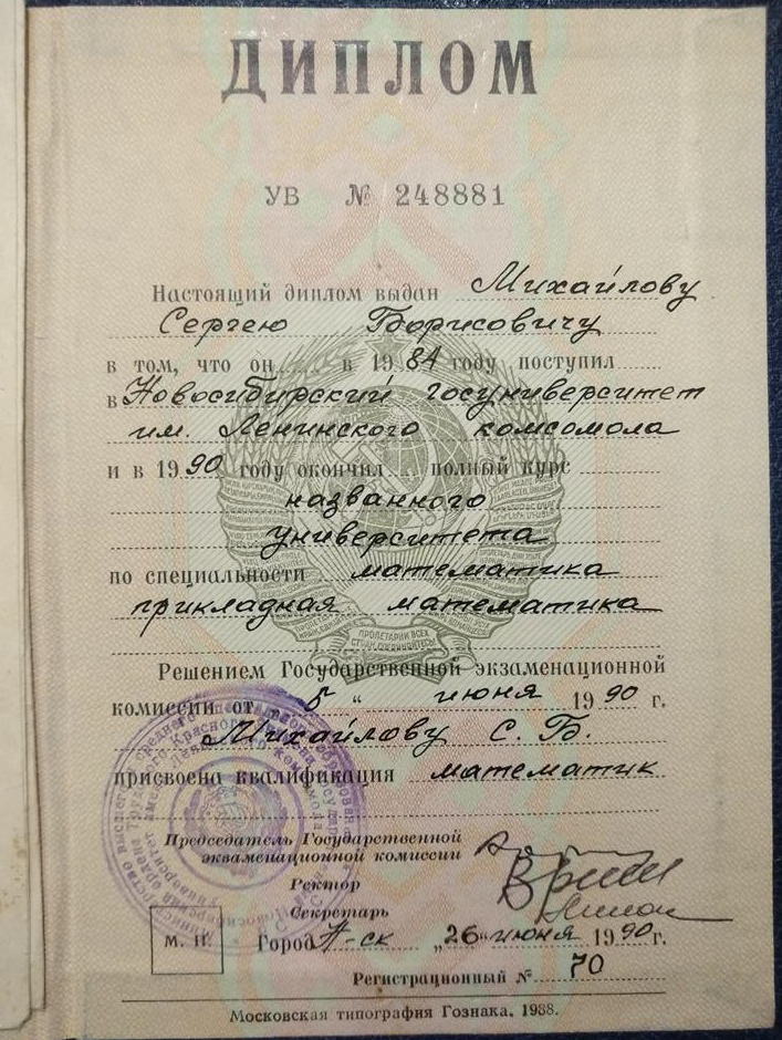 Имею документы об окончании аспирантуры Института Экономики СО РАН по математическим методам в экономике и аспирантуры СибГУТИ по математической кибернетике и дискретной математике.