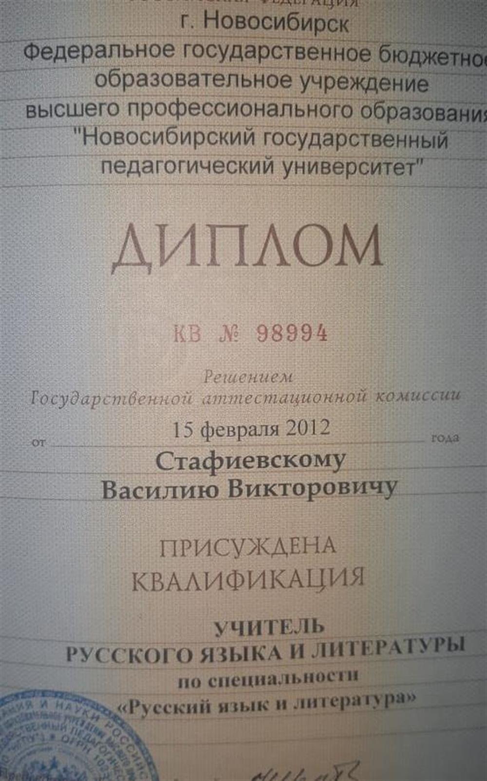 Квалификация - учитель русского языка и литературы.