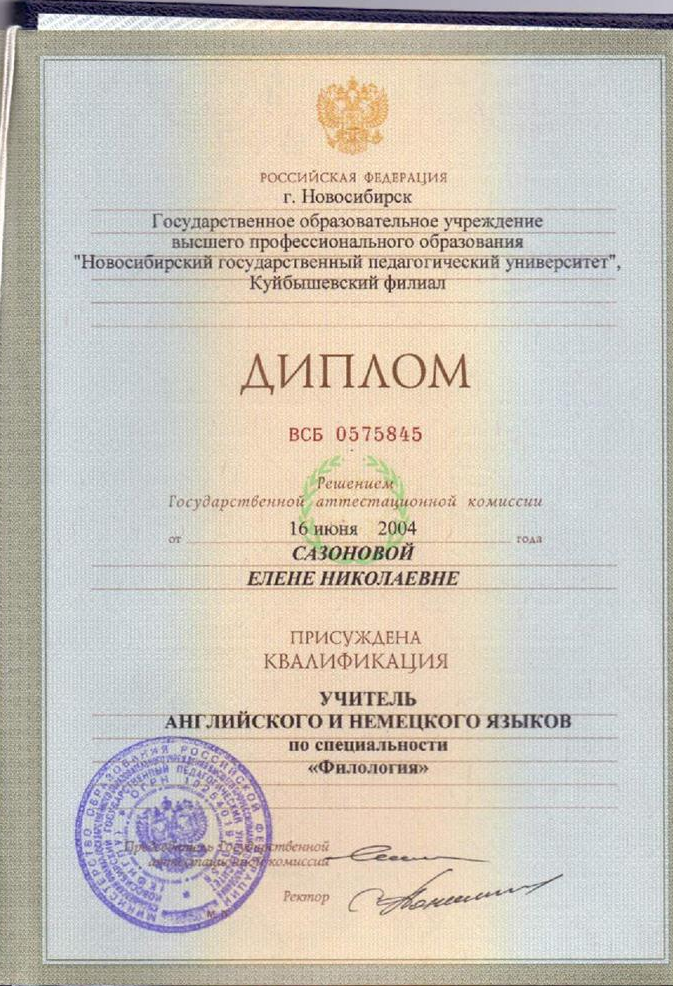 Квалификация - учитель английского и немецкого языков.