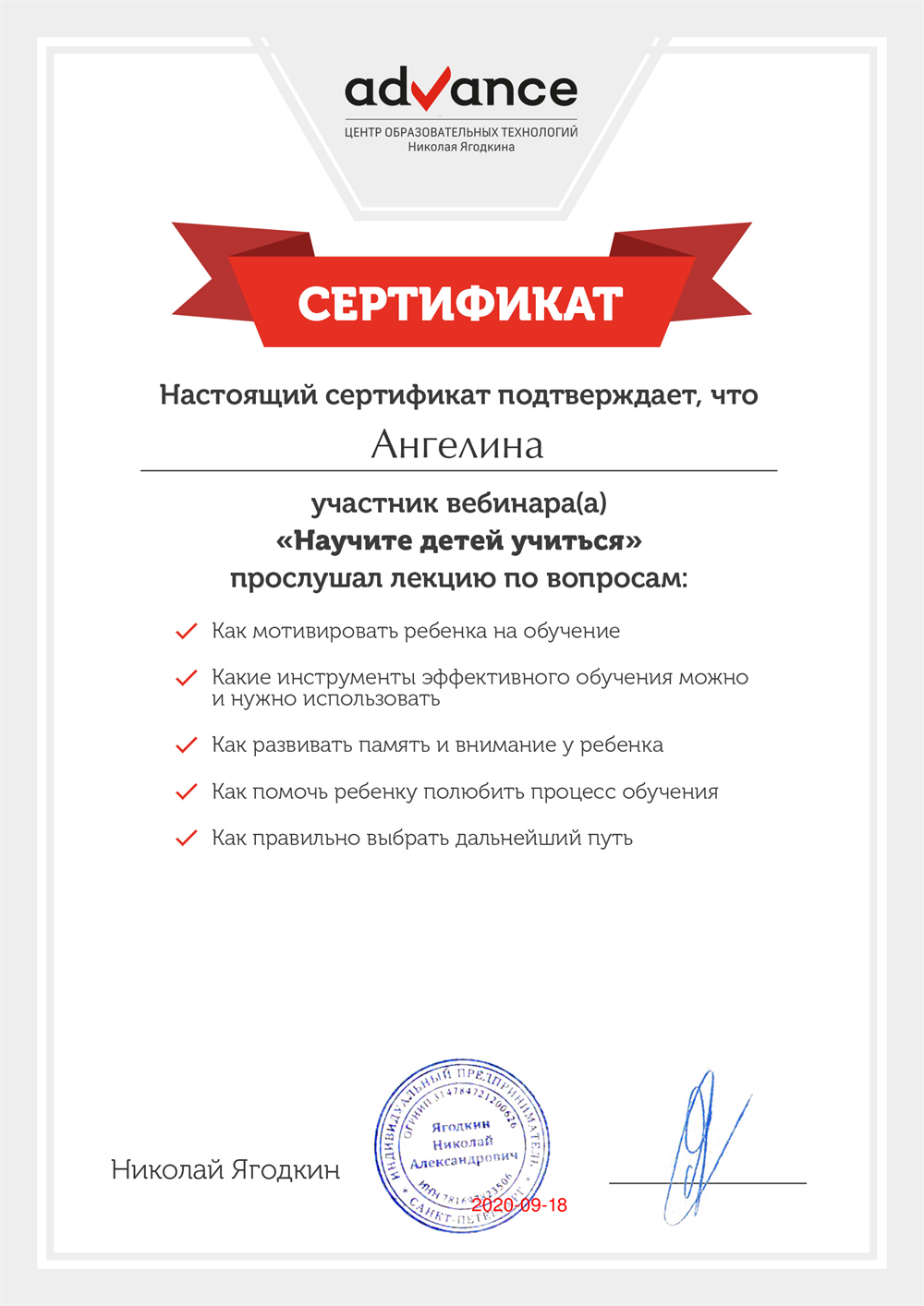 Репетитор Ангелина Юрьевна