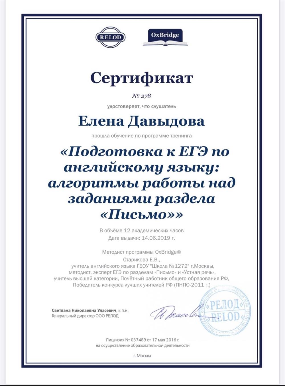 [div]Специалист по подготовке к ОГЭ и ЕГЭ.[/div][div]Преподаватель в школе с углубленным изучением английского языка . [/div]