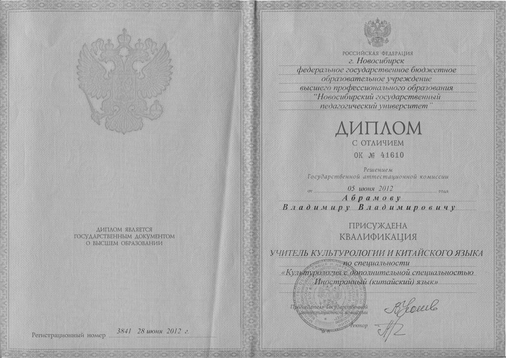 Квалификация - учитель культурологии и китайского языка. Диплом с отличием.