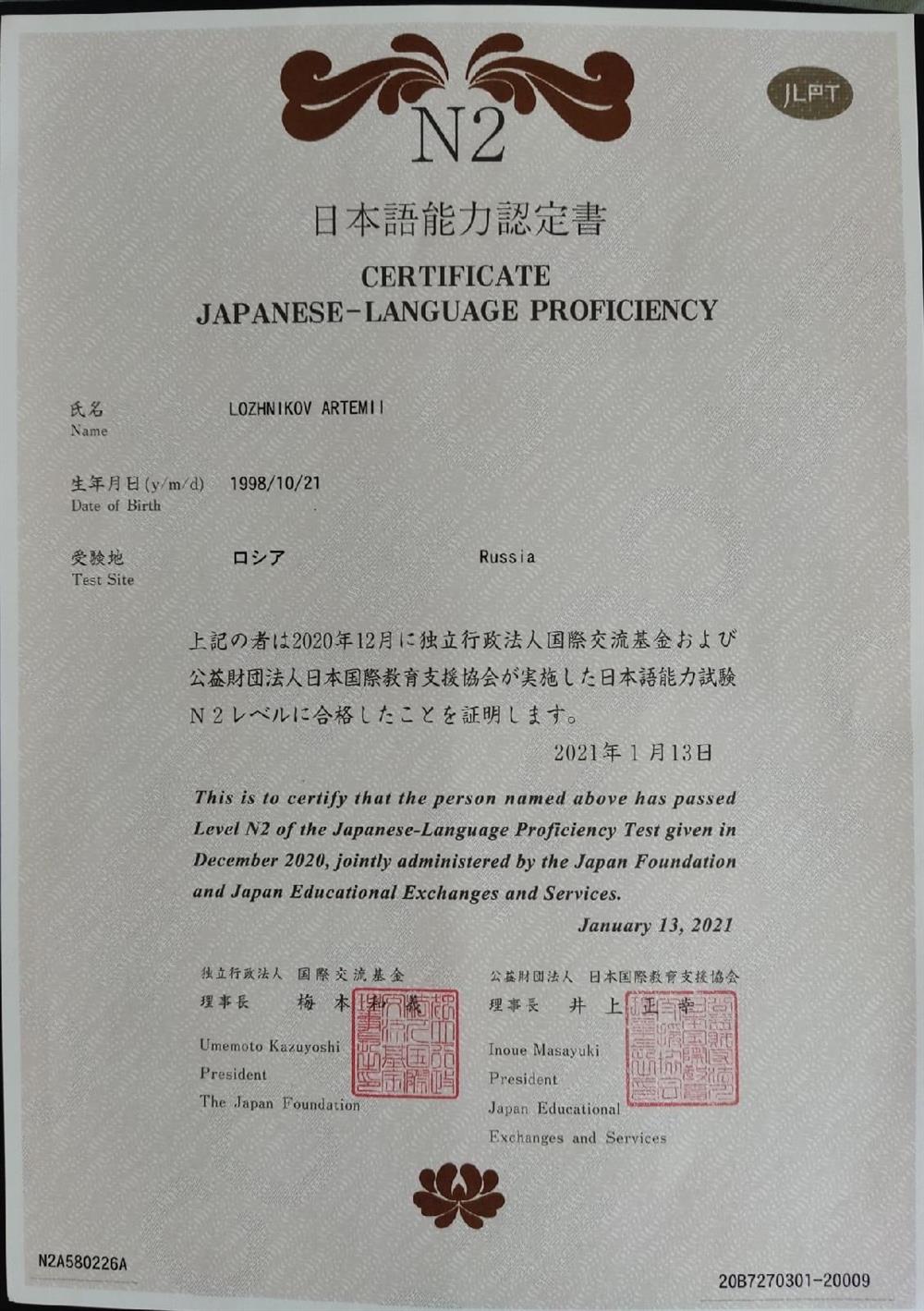 > Обучаю японскому языку с нуля и от среднего к продвинутому уровню.> Индивидуальный учебный план и выбор материалов в зависимости от целей и пожеланий ученика.> Практические рекомендации для самостоятельного поддержания уровня языка, методик запоминания, перевода и т. д.> Опыт краткосрочной и годовой стажировки в университетах. Японии, сертификат международного образца о знании Японского языка.Краткосрочная стажировка в Университете Тохоку, Япония, 2017 г.Годовая стажировка в Университете Цукуба, Япония, 2019-2020 гг.