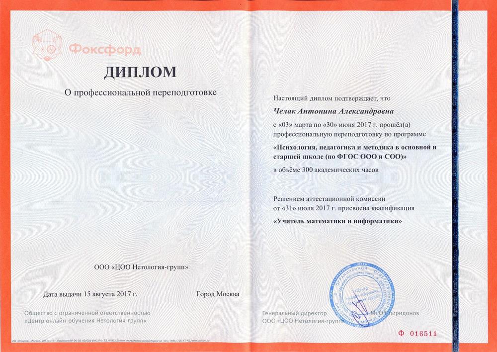Диплом с отличием.