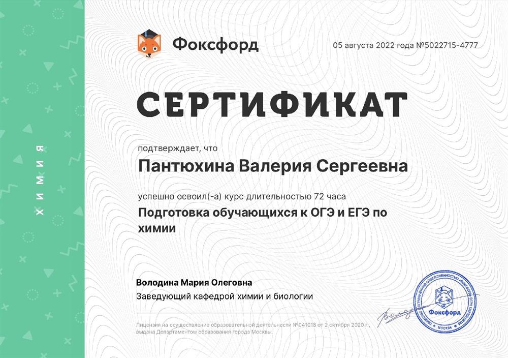 Здравствуйте, уважаемые родители и дорогие ученики! Приглашаю Вас на занятия по химии.Что Вы получите на уроках со мной?+ Научимся решать каждое задание из ЕГЭ/ОГЭ+ Помогу догнать/обогнать программу+ Подготовлю к контрольной и помогу с дз+ После занятий задаю дз и провожу проверку, чтобы на следующем уроке отработать ошибки+ Присылаю ученику материалы по пройденным темам, чтобы можно было легко повторить+ Провожу опыты в виртуальной лаборатории (особенно актуально для сдающих ОГЭ)+ При подготовке к ЕГЭ и ОГЭ дарю чек-листы, чтобы отслеживать прогресс+ Даю обратную связь родителям каждый месяц+ Всегда на связи с ребёнкомНемного обо мне:– Научный сотрудник института неорганической химии СО РАН (мы можем говорить о химии не только как о школьном предмете)– Являюсь соавтором научных статей– Сдала ЕГЭ по химии на 98 баллов и знаю все тонкости экзамена– 2 года работала куратором в онлайн-школе по подготовке к ЕГЭ и ОГЭ по химии– Участвовала в проведении и проверке Всесибирской олимпиады школьников– Обучаюсь на 4 курсе по специальности "Химическая технология"– Окончила химико-биологический лицей с золотой медалью– Использую красочные авторские презентации и материалы на уроках– Мой приоритет в обучении – тёплая дружеская атмосфера на уроке. Ребёнку будет не страшно ошибаться– Все мои ученики отмечают простоту объяснения и позитивное настроение на урокахУроки проходят онлайн на удобной платформе со встроенной видеосвязью и виртуальной доской, на которой можем писать и я, и ученик. Комфортно, когда всё в одной вкладке :)При необходимости можно провести бесплатную консультацию, на которой мы:– познакомимся друг с другом– разберем функционал платформы – определим уровень знаний– выстроим индивидуальную программу и расписание