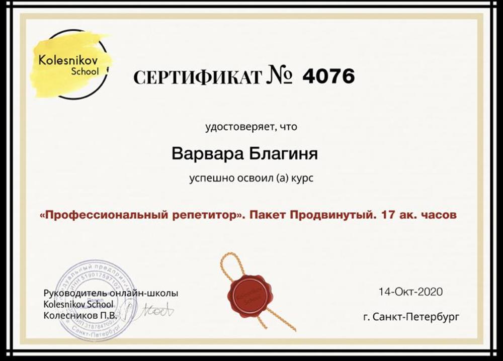 Со слов клиента: "Отличный преподаватель. Она мне все знания систематизировала".