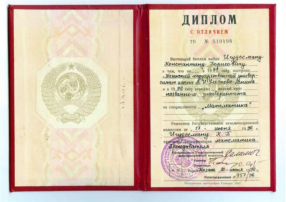 Образование, научные степени:КФУ (КГУ), механико-математический факультет, специальность – математик, педагог (диплом с отличием), 1991–1996 гг.Кандидат физико-математических наук, 2000 г.КФУ (КГУ), кандидат физико-математических наук, 2000 г.Доцент по кафедре геометрии, 2006 г.Опыт работы:Университет Иннополис, 2013–2019 гг.Репетиторская деятельность, 2000–2015 гг.КФУ (КГУ), доцент кафедры геометрии, 1999–2015 гг.Разное6Научные стажировки в Greifswald University, Germany (2004 г., 2007 г., 2011 г).Научные стажировки Australian National University, 2009–2010 гг.Подготовка студентов к сессии по любым математическим дисциплинам, помощь в решении контрольных, написании курсовых и дипломных работ. Подготовка к поступлению в ШАД Яндекса, магистратуре ВШЭ, РЭШ по всем необходимым математическим предметам. Возможны дистанционные занятия: аудио — Skype или аналогичное приложение, при необходимости занятие можно записывать программой захвата аудио+видео для повторного просмотра.