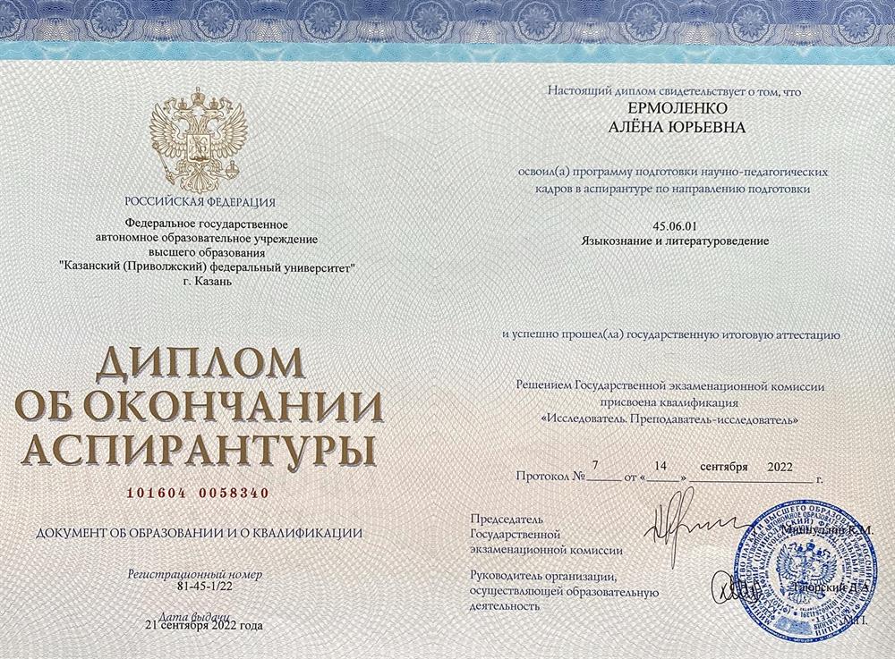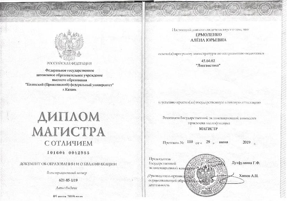 Закончила филологический факультет Казанского федерального университета г. Казани (бакалавр - зарубежная филология, магистратура - лингвистика, аспирантура - сравнительное языкознание). Параллельно являюсь преподавателем в КФУ и пишу кандидатскую диссертацию.На последнем курсе бакалавриата прошла отбор в компанию "ДАЙМЛЕР КАМАЗ РУС" (Mercedes), где занималась переводом технической документации (английский-немецкий-русский), осуществляла последовательный перевод при деловых встречах с иностранцами.Имею публикации в профильных зарубежных изданиях (Scopus, WoS), 2 сертификата DLL-тьютора (немецкий язык), в данный момент прохожу обучение для экзамена TESOL (английский язык), чтобы повысить свой профессиональный уровень.Являюсь официальным экспертом ЕГЭ и ОГЭ по английскому языку г. Казани (2022 г.)Люблю изучать и преподавать языки. Составляю индивидуальную программу для каждого ученика, исходя из его интересов и уровня знаний. На занятиях использую дидактические игры для быстрого усвоения пройденного материала. Мои ученики сдавали международные экзамены на отлично.