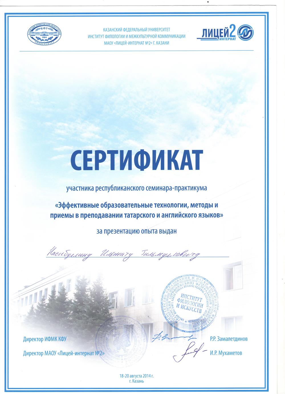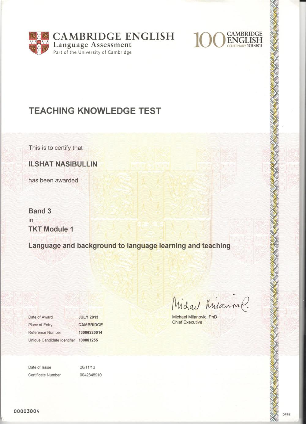 Прошел курсы по ТКТ (Teacher Knowledge Test) к Кэмбридже в 2013 году.Выучить английский язык ? Сдать эзамены IELTS , TOEFL, FCE , ЕГЭ или ОГЭ? Или выучить турецкий? А может арабский ? Или немецкий? На самом деле вы сможете говорить на любом. Это зависит только от того, насколько сильно вы этого хотите. Даже не от вашего покорного слуги ). Мы же вам покажем самый короткий путь к достижению вашей цели - говорении на любом из вышеперечисленных языков. Всего три месяца занятий - и вы удивитесь своим успехаи в изучении языков! Всем успехов! )