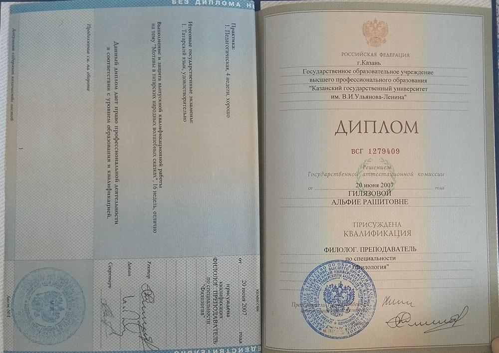 Квалификация - филолог, преподаватель.