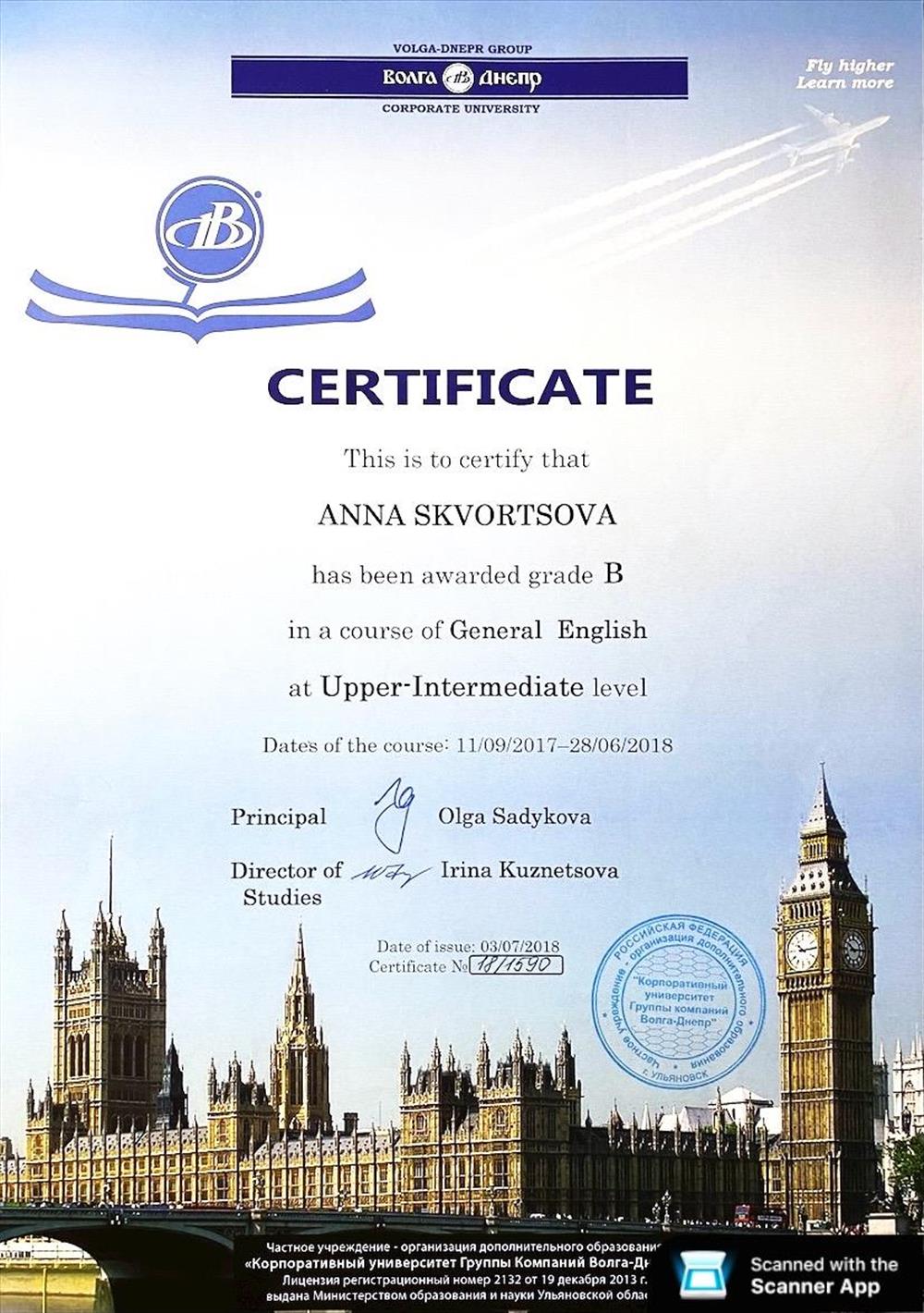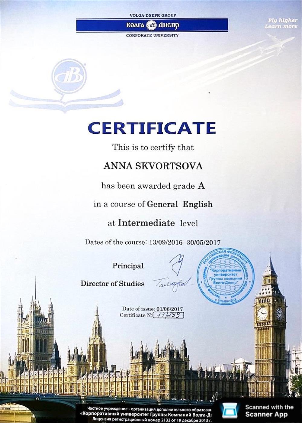 Меня зовут Анна. Я студентка 3 курса КФУ Института Международных отношений. На данный момент уровень английского языка-Advanced.