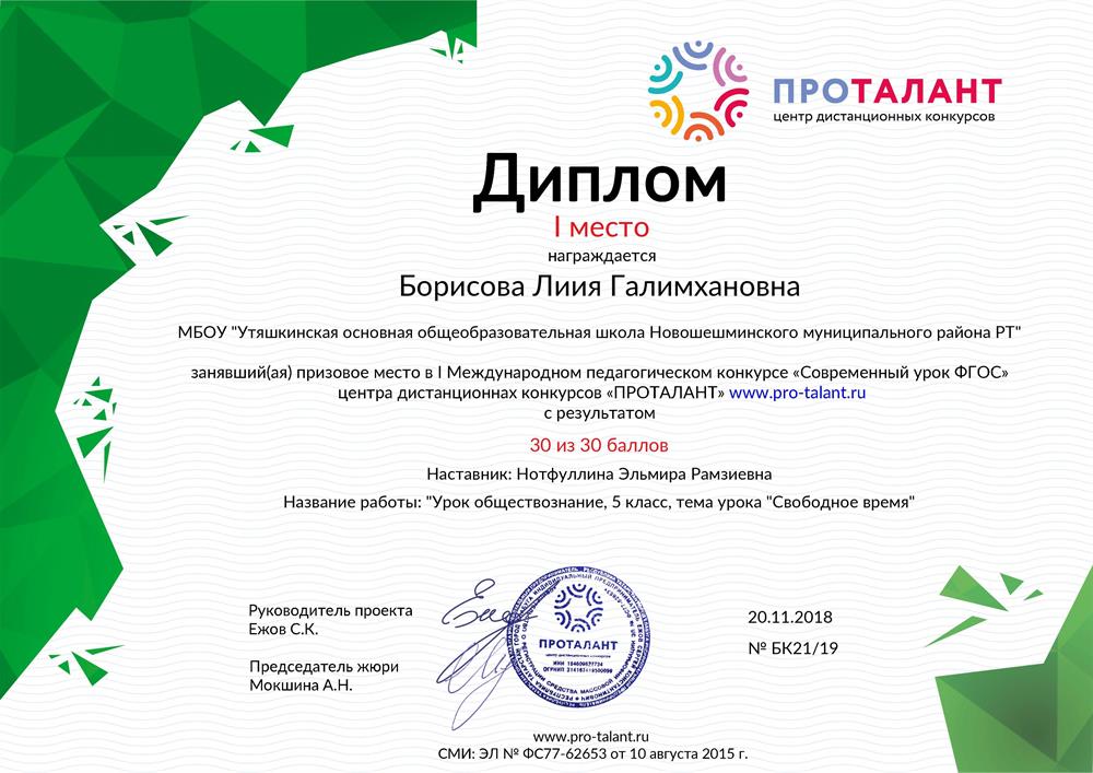 Здравствуйте! Меня зовут Лилия Галимхановна, я преподаю обществознание около 20 лет. Мое первое высшее образование- юриспруденция, но я решила связать свою жизнь со школой, переобучилась на учителя истории и обществознания. Я люблю дело, которым занимаюсь, мне нравится работать с детьми. С большим удовольствием объясню любую тему по обществознанию. Считаю этот предмет один из самых интересных и важных в школьной программе. Мои ученики - ежегодные призеры и победители муниципальных туров олимпиад по обществознанию. -Диплом о профессиональной переподготовке выдан КФУ ПМЦПК и ППРОИП и П, Программа: «История: теория и методика», 520 часов, учитель истории, выдан 27 января 2012г.-Диплом о профессиональной переподготовке выдан Частное образовательное учреждение высшего профессионального образования «Институт экономики, управления и права (г. Казань)», программа «Педагогические технологии преподавания обществознания», учитель обществознания, с 15 июня 2015г. по 16 ноября 2015 г., выдан 16 ноября 2015г., г. Казань