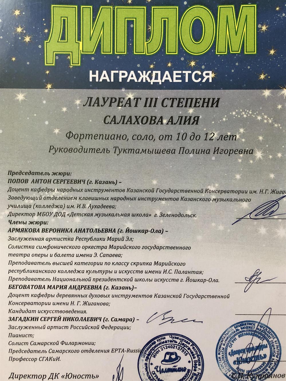 Преподаватель первой квалификационной категорииАртист оркестра Театра им.Качалова. Среди учеников лауреаты Республиканских, Международных, Всероссийских конкурсов.