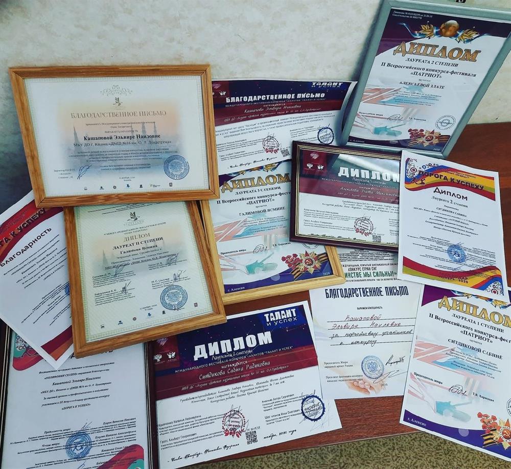 Лауреат международных конкурсов,преподаватель высшей квалификационный категории,успешно выступала на концертах с оркестром Когана, Василевского. Записи татарских песен звучали на радио "Курай" .Ученики лауреаты всевозможных конкурсов всероссийских международных, так же есть награждение именных стипендиантов,ученики выступали на большой сцене в проекте "Добрая волна" Игоря Крутого,выступали с джазовым оркестором в филармонии под руководством Василевского.