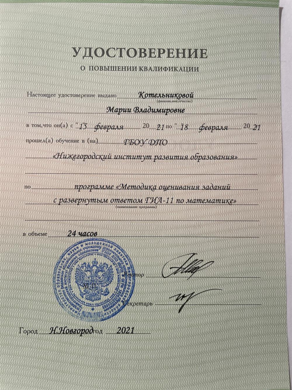 Имею опыт преподавания в школе, колледже. Преподавала  в ННГУ им. Н.И. Лобачевского, высшей школе экономики. Также проводила подготовительные курсы для абитуриентов. Была членом предметной комиссии по математике в ННГУ, с 2014 являюсь экспертом ЕГЭ .