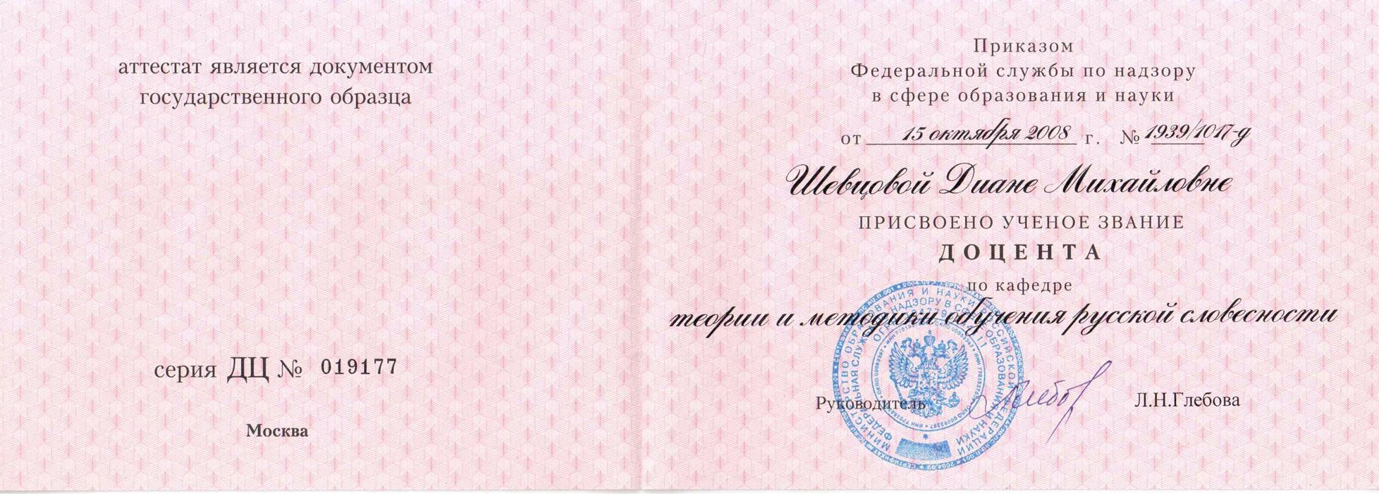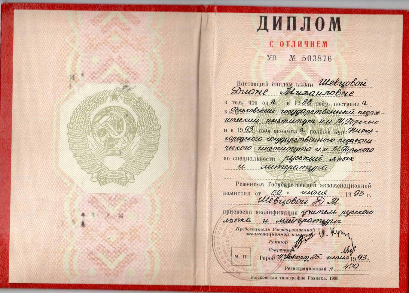 Квалификация - учитель русского языка и литературы.