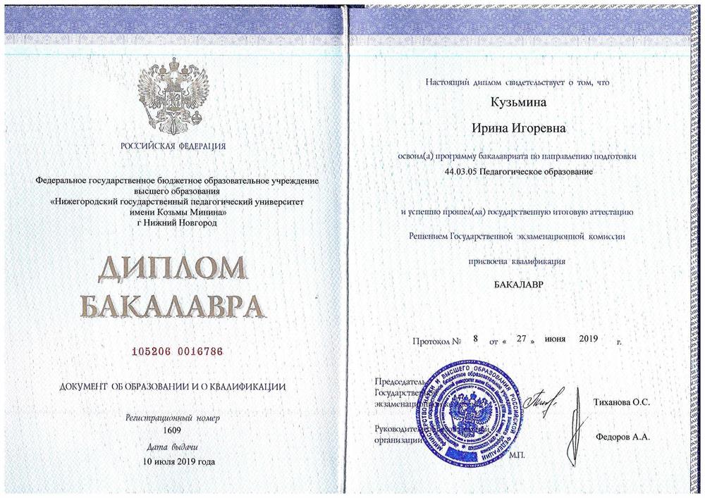 Закончила филологический факультет в НГПУ им. Минина. На данный момент получаю магистратуру по нарпавлению "Современные стратегии литературного образования". Веду подготовку по русскому языку среди учеников 5-9 классов к ВПР и ОГЭ.Работаю в образовательной организации, которая занимается проведением комплексных экзаменов по русскому языку, истории России и основам законодательства РФ (для получения разрешения на работу в РФ / патента, разрешения на временное проживание в РФ, вида на жительство в РФ). Провожу подготовку к ТРУКИ (TRUFL) по уровням ТЭУ, ТБУ ТРКИ-I-II-III. Готовлю иностранных детей к обчению в русской школе.