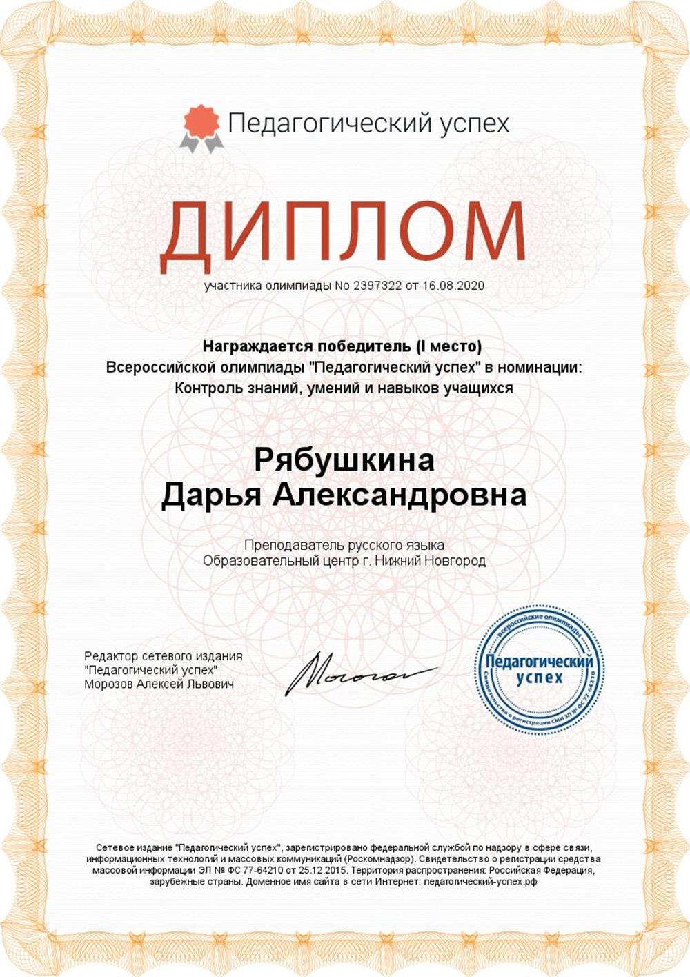 Предлагаю эффективную подготовку к ВПР, ОГЭ по русскому языку и итоговому собеседованию. Помогу освоить школьную программу без зубрежки и скучных заданий! Занятия проводятся на дому у преподавателя в индивидуальном формате.До 30 сентября действует скидка 15% на первый месяц обучения (400 руб/час). Первое занятие, на котором я проведу профильную образовательную диагностику, является бесплатным.В своей профессиональной деятельности использую современные методики обучения, в частности, коммуникативный подход и технологию проблемного изложения. Это значит, что Ваш ребенок сможет составлять алгоритм для решения того или иного затруднения, следовать ему и проговаривать каждый этап в речи! Именно рассуждение, проблемный диалог с преподавателем помогают ответить на многие «Почему?» в языке и не только. При таком подходе знания остаются в долгосрочной памяти, а не механически выучиваются до ближайшей контрольной.Немного о себе:С отличием окончила филологический факультет СГУ им. Н.Г. Чернышевского по педагогическому профилю. Имею опыт работы в средней школе, систематично прохожу курсы повышения квалификации в рамках ФГОС. На данный момент осваиваю магистерскую программу по филологии в ННГУ им. Н.И. Лобачевского.
