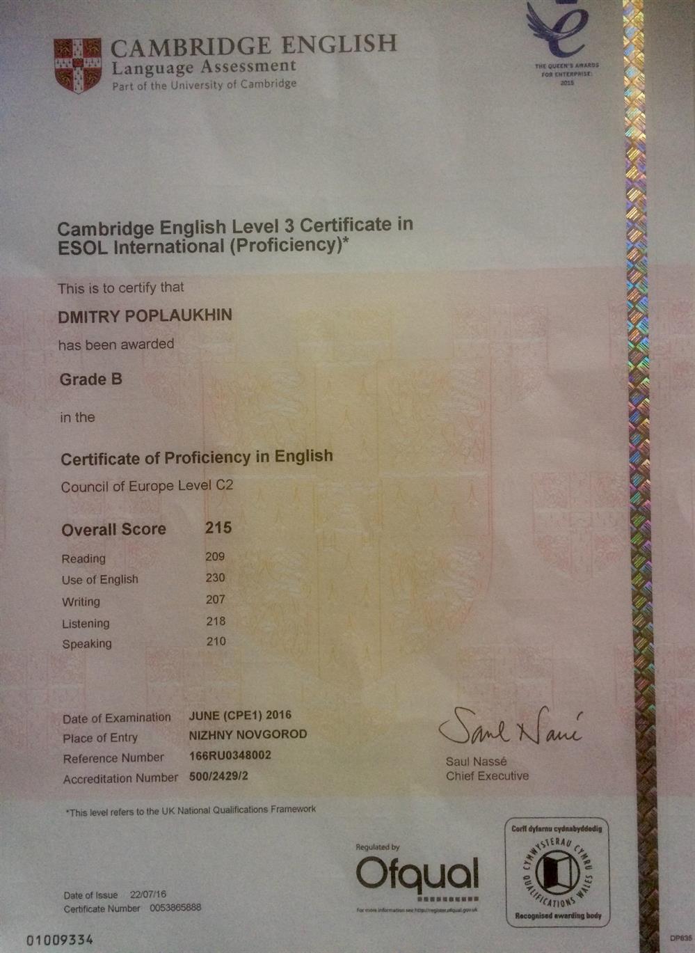 В декабре 2020 г. сдавала экзамен CPE и сейчас пришли результаты - у меня C2 Grade B! Большое спасибо Дмитрию за помощь в подготовке и дельные советы!!! При сдаче экзамена я ими руководствовалась и удачно сдала экзамен!