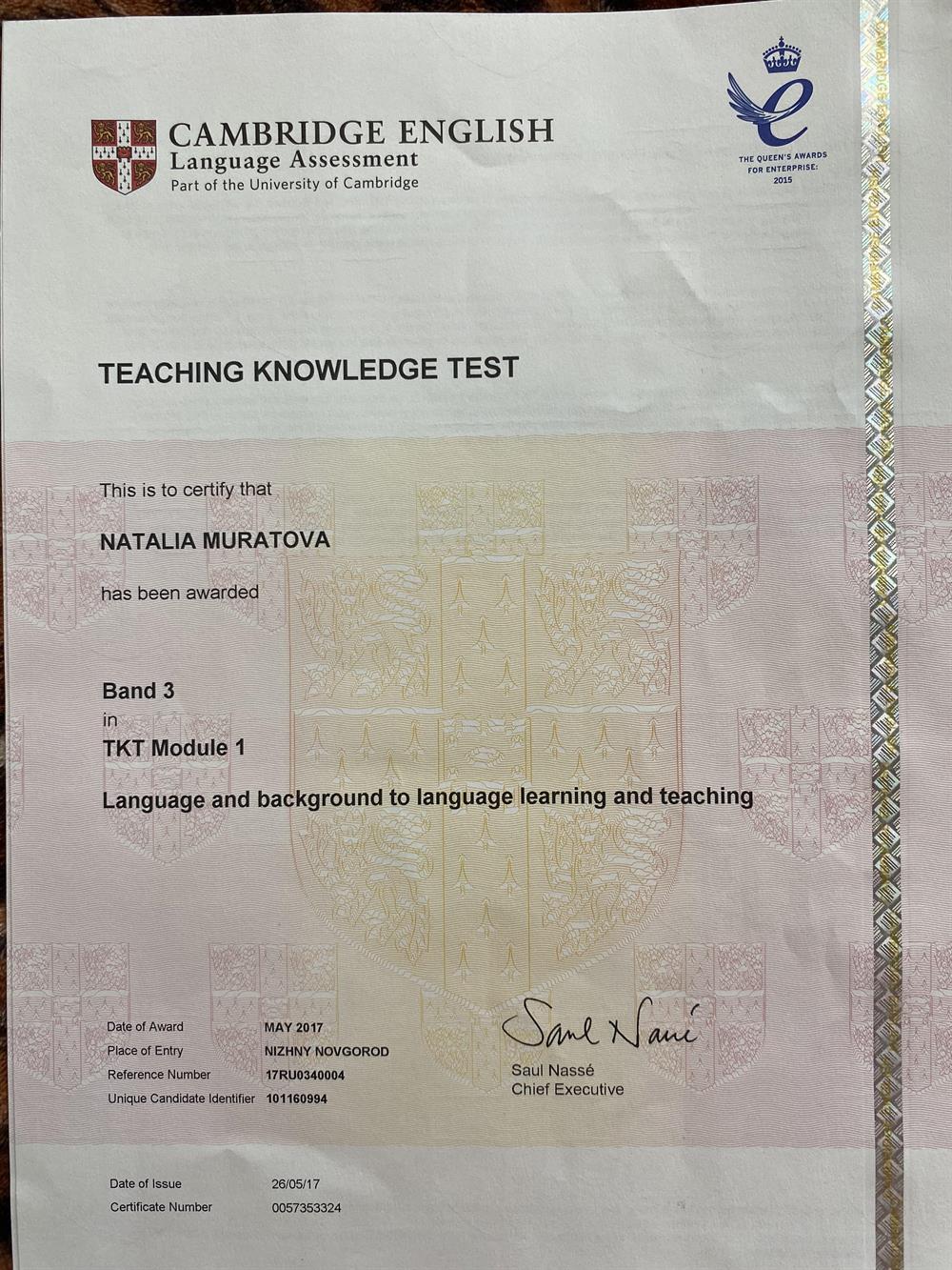 Работаю со всеми возрастами школьников, готовлю к сдаче ОГЭ, ЕГЭ. Имею многочисленные сертификаты об окончании курсов повышения квалификации. Имею Кембриджский сертификат ТКТ.