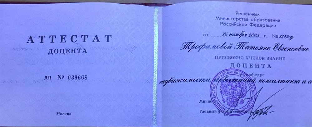 Аспирантура. Кандидат экономических наук, доцент. В 2000 году защитила кандидатскую диссертацию по тематике ипотечного кредитования. Затем получила звание доцента ВАК.