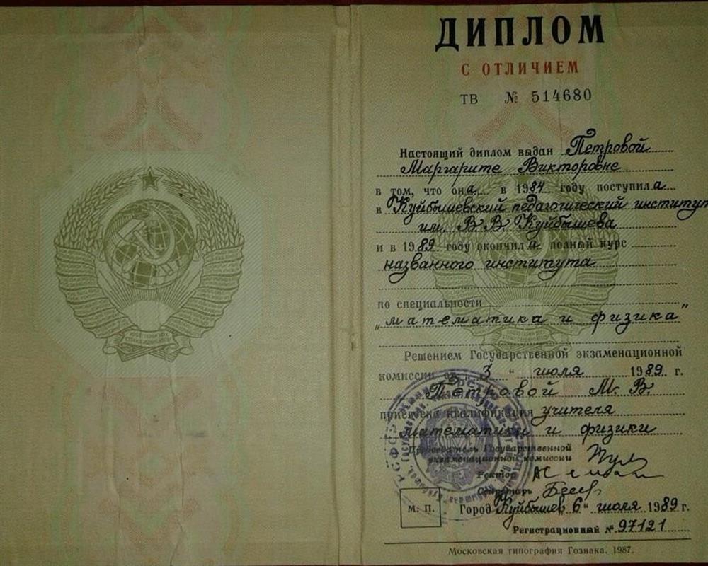 Квалификация - учитель математики и физики. Диплом с отличием.