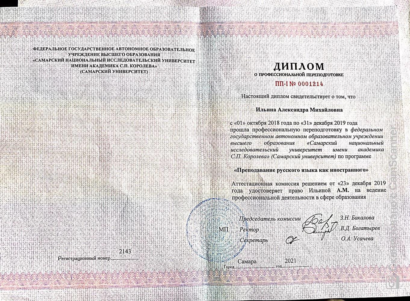 Дипломированный преподаватель русского как иностранного (диплом о профессиональной переподготовке Самарского государственного университета имени академика С.П. Королева). Структура занятия зависит от цели облучающегося: выполнение домашнего задания, объяснение правил языка, отработка усвоенного на практике (написание диктантов, выполнение упражнений, устный ответ и тд), подготовка к экзаменам. Занятия проходят в неформальной обстановке - обучающимся легче усваивать материал, так как отсутствует фактор стресса. Опыт репетиторской деятельности по данному направлению - 3 года. Результаты: успешная подготовка обучающихся к ТРКИ, овладение обучающимся русским языком от "нулевого" уровня до базового, поступление в российский ВУЗ. Опыт преподавательской деятельности в Самарском государственном техническом университете - 1 год. Результаты: успешная подготовка обучающихся к сдаче ТРКИ-1, овладение обучающимся русским языком от "нулевого" уровня до базового, поступление в российский ВУЗ. Русский язык — язык, созданный для поэзии, он необычайно богат и примечателен главным образом тонкостью оттенков (Мериме)