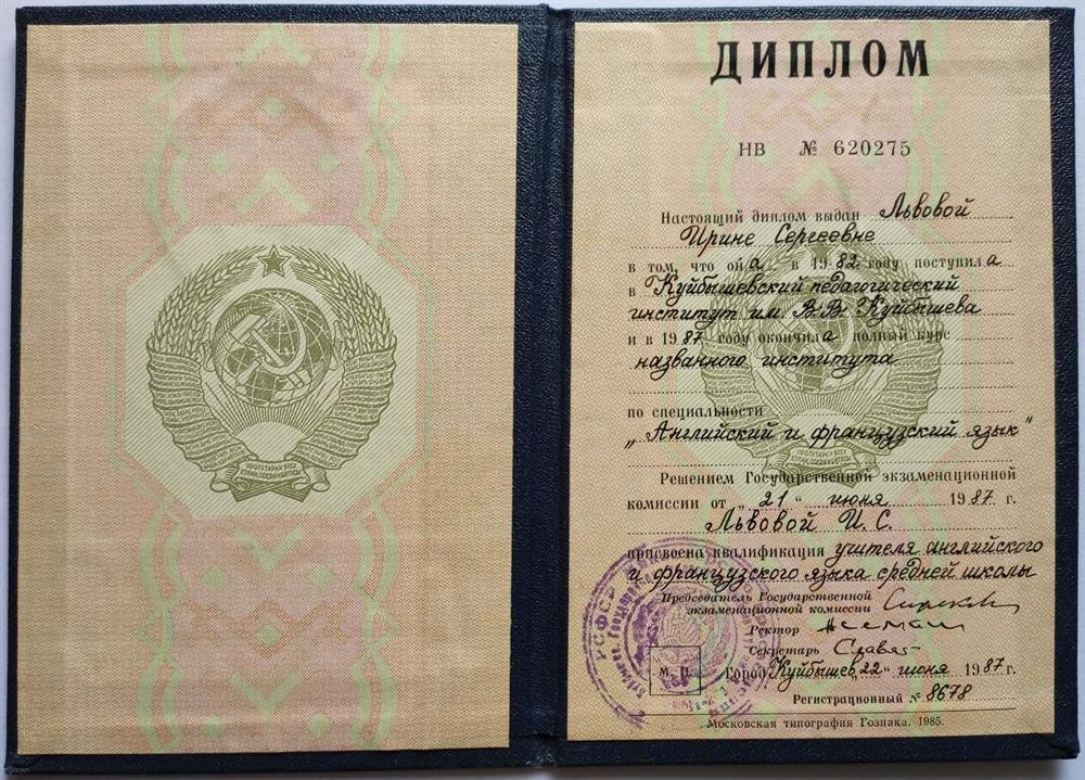 Квалификация - учитель английского и французского языков.