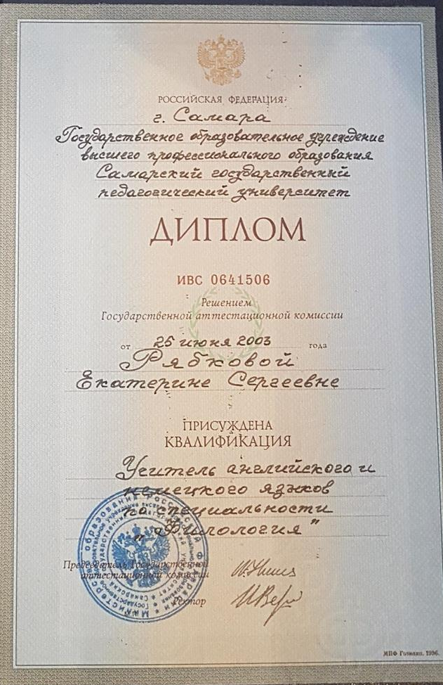 Квалификация - учитель английского и немецкого языков.