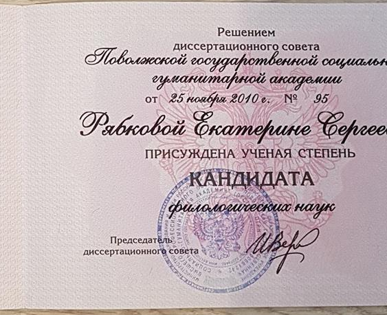 Кандидат филологических наук. Защита диссертации 2010 г.