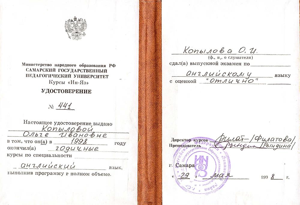 Опыт преподавания в школе. Большой страж работы переводчиком английского и французского языков. Окончила курсы английского языка (9 месяцев). С 2009 года начала преподавать дистанционно (по Skype).