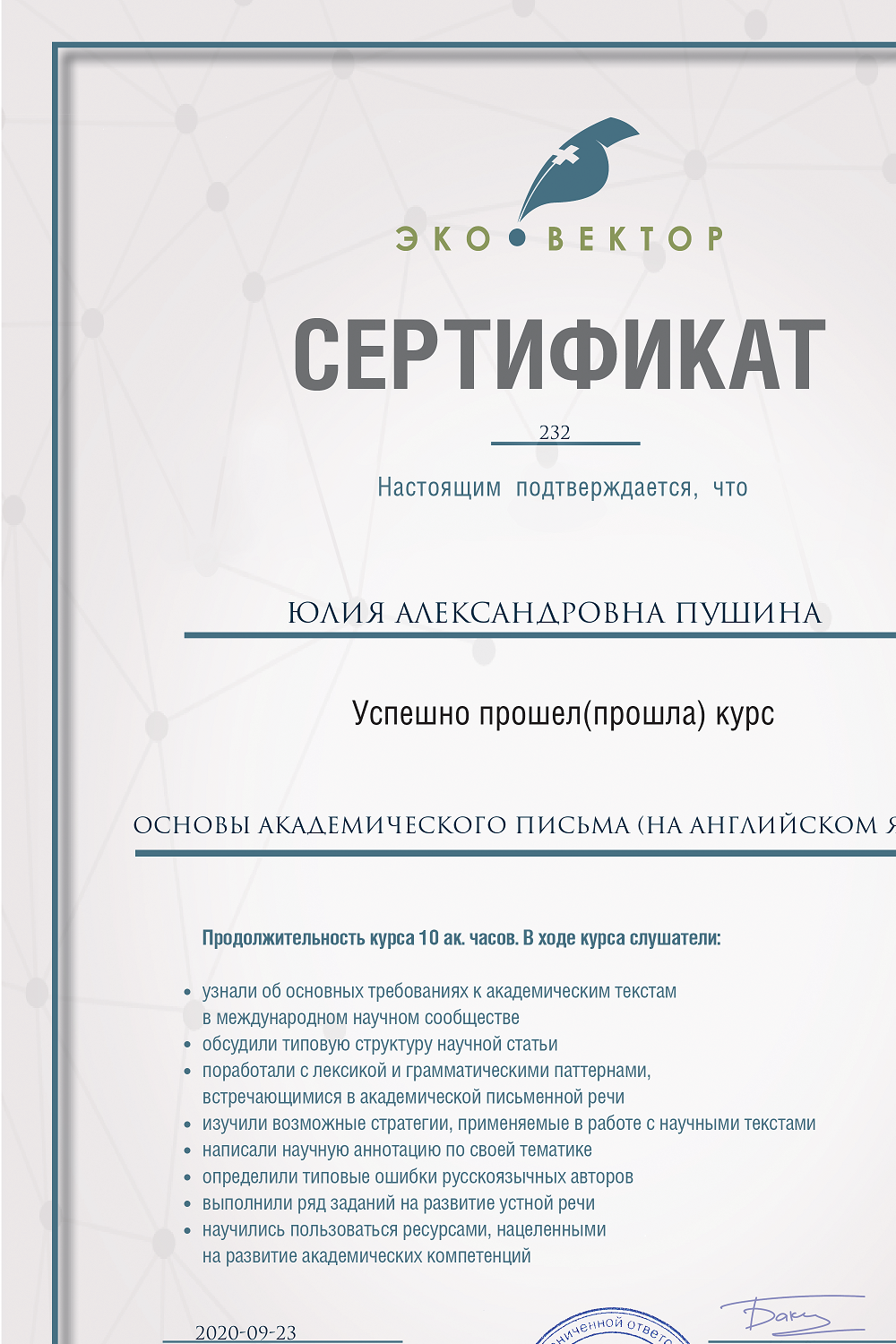 Диплом с отличием.
