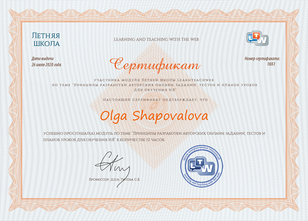 Ольга Владимировна - отличный преподаватель. Занятия интересные, грамотно выстроены. Индивидуальный подход к ребёнку, доброжелательная атмосфера занятий. Я очень довольна результатами своего ребёнка. Ольгу Владимировну рекомендую как хорошего грамотного педагога.