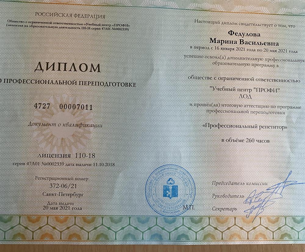 Очень квалефицированный педагог. Она с таким удовольствием передает свои знание ученику, что ученик с нетерпением ждет встречи. Каждый раз мой ребенок узнаёт все больше и больше. Мария Васильевна любит свой предмет. Я думаю мы сдадим ЕГЭ с хорошими балами.