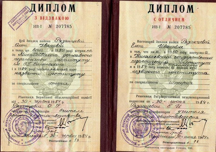 Квалификация - учитель истории и обществоведения. Диплом с отличием.