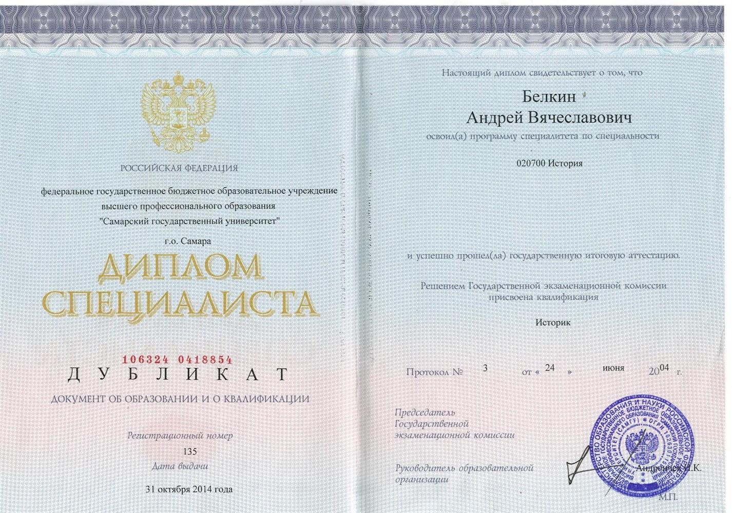 Кандидат исторических наук (Институт истории РАН г. Москва, 2017)