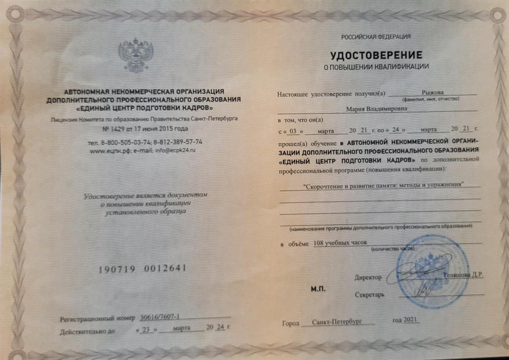 Стаж работы с детьми более 13 лет. Диплом по специальности " Педагог- психолог". Разработан свой букварь по обучению чтению детей от 3 лет. Преподаю курсы :" Скорочтение"" Ментальная арифметика"" Каллиграфия"" Подготовка к школе"" Начальные классы"