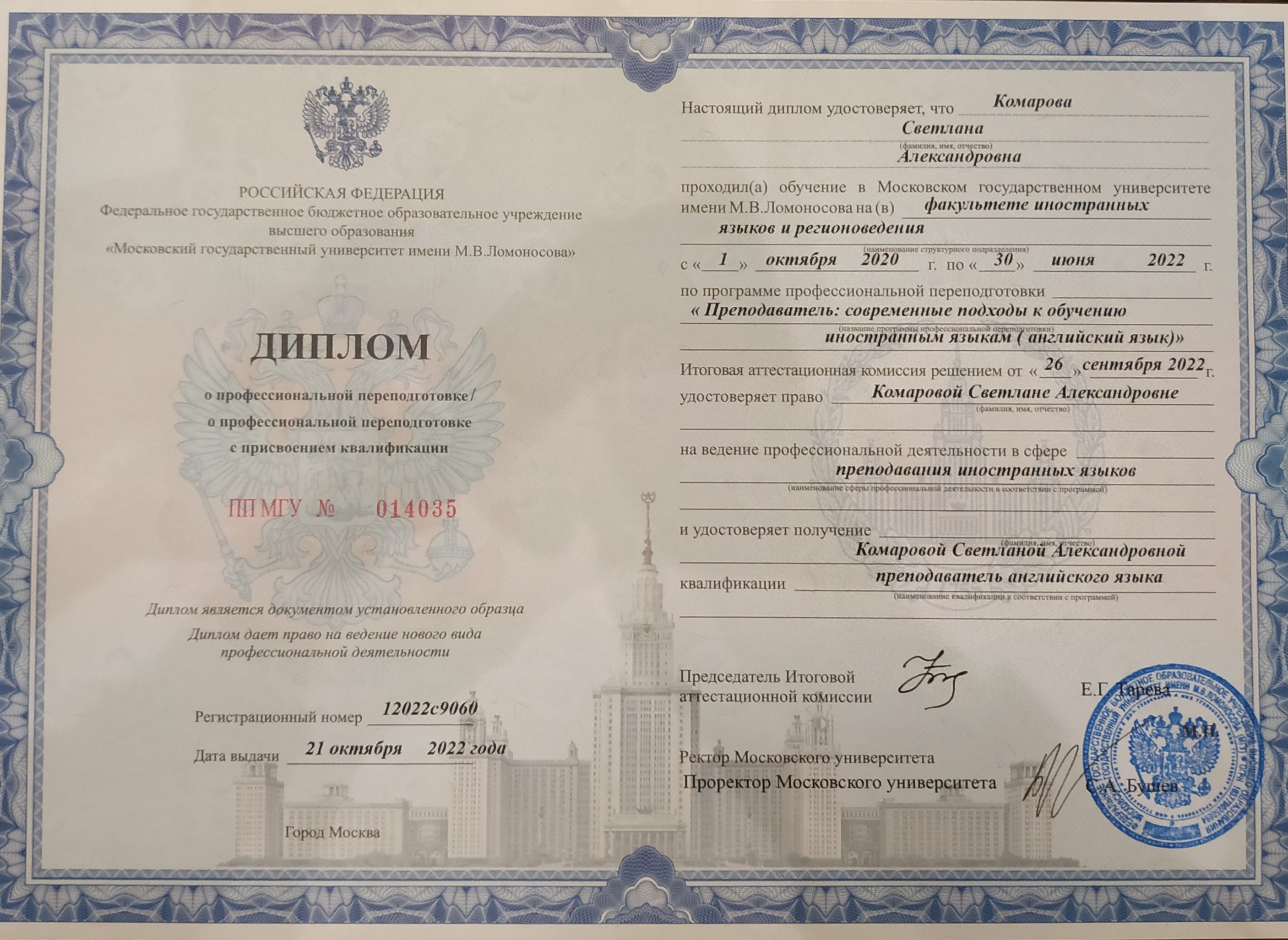 Преподаватель английского языка с профильным образованием. Мой уровень владения английским языком выше среднего-продвинутый. Опыт работы 1,5 года. Занятия провожу либо очно, либо дистанционно. Для дистанционных занятий с младшими школьниками необходимо присутствие взрослого, чтобы исключить технические сложности. На своих занятиях младшими школьниками я активно использую песни и обучающие видео, собственные интерактивные задания на доске Jamboard и платформах learningapps, genial. ly и др., и, конечно, учебники линеек Family and friends, Fly High, Welcome и др. Считаю важным не только обучение младших школьников английскому языку, но и умению учиться. Занятия со мной полезные и нескучные. Помимо младших школьников работаю со взрослыми: общий английский (от начального до среднего уровня владения английским языком). На занятиях со взрослыми использую программу из учебных пособий English Files, дополняю их другими материалами и собственными заданиями в соответствии с уровнем, нуждами и интересами учащихся для поддержания мотивации и интереса к обучению. Время, свободное для занятий: понедельник с 11 до 21, вторник с 11 до 21, среда с 13:00 до 21:00, четверг с 18 до 21, пятница с 18:00 до 21:00, суббота дистанционно с 17:00 до 21:00, воскресенье дистанционно с 17:00 до 21:00.