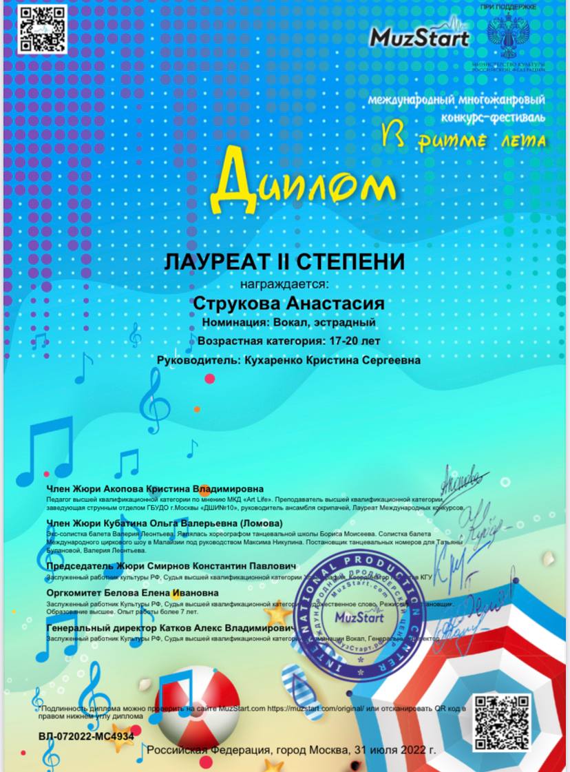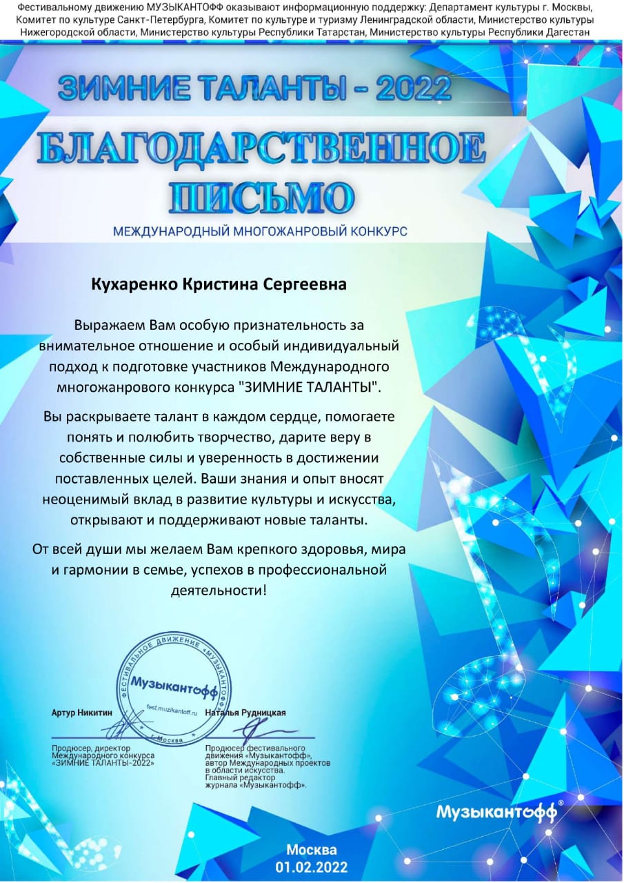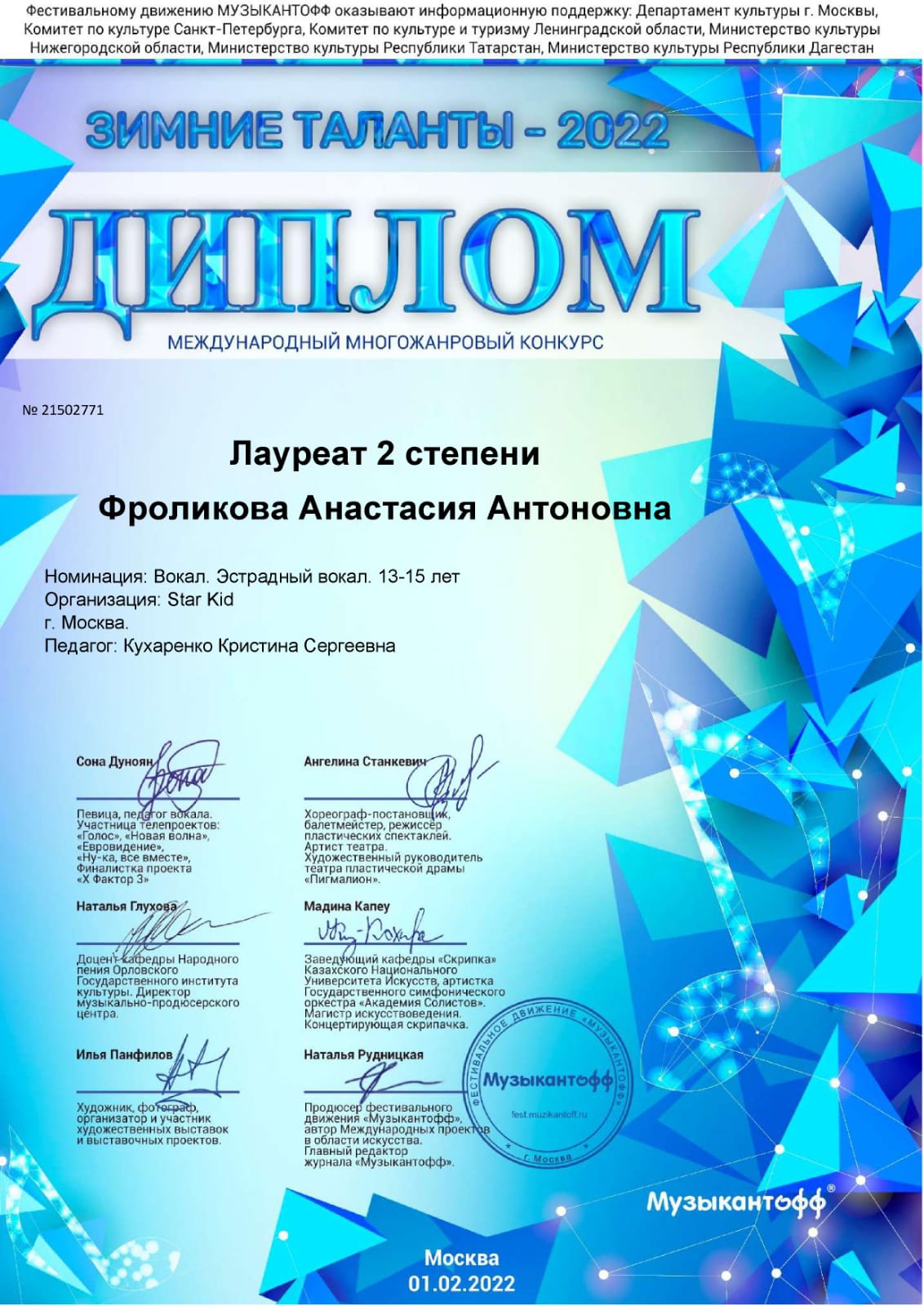 Меня зовут Кристина, я педагог по трем направлениям. Имею большой опыт в музыкальной сфере Мои ученики на первом году обучения получили лауреата международных конкурсов. А вы готовы получить такой же опыт?;) Есть желание через год оказаться в Вузе? На прослушивании расскажу, как к этому прийти. Обучаю как детей от 4 лет, так и взрослых. Если слышали в свою сторону фразеологизм "Медведь на ухо наступил" - бегом на занятия, буду исправлять! О себе: Занимаюсь музыкой с раннего детства. Первые несколько лет музыкальной школы оканчивала экстерном по классу фортепиано, потом перевелась на вокальное отделение, продолжая развивать свои навыки игры на пианино. Обучалась в академии Яны Рудковской по направлению эстрадно-джазовое пение и хореография. Очень приветствую учеников, которые мечтают научиться петь и играть на инструменте одновременно. А если есть желание овладеть клавишными без вокала - помогу! Учитываю пожелания ученика, подбираю индивидуальный подход к каждому В университете была хорошая подготовка как артиста: занималась танцами, сценической речью и движением, актерским мастерством. Пела в ансамбле, играла на фортепиано. Данные дисциплины помогают развить артистическую личность, о которой я писала в своем дипломной работе. Помимо этого есть знания в области фониатрии. Если нужно, расскажу вам почему мы слышим на себя на записи по-другому, или о строении голосового аппарат;) Благодаря этому освоение вокала у ученика происходит лучше! Подготовлю к конкурсам и к поступлению в училища/ВУЗы. Сама являюсь лауреатом и дипломантом различных Всероссийских и Международных конкурсов по вокалу и фортепиано. Кроме педагогической деятельности, я сотрудничаю с фондом поддержки культуры и спорта “Новые лица”. Четвертый год мы проводим фестиваль “Новые лица - прежние идеалы” в Государственном Кремлевском Дворце, делаем концерты в Доме Учёных, в парках и т.п. Именно поэтому нет никаких проблем в предоставлении вокальной практики своим ученикам! В 2020 году стала организатором фестиваля Визуальных искусств в "Орлёнке". Даю мастер-классы по вокалу и музыкальному развитию. В 2019 году принимала участие в фестивале "Московская Весна A Cappella" в качестве учителя музыки, где провела один из мастер-классов для детей и взрослых. Ребята узнали, что испытывают певцы на сцене данного проекта, когда поют в несколько голосов. Студент Musical Wave по направлению Songwriting