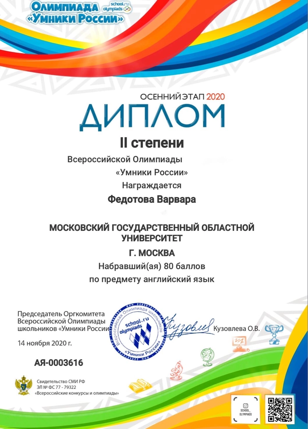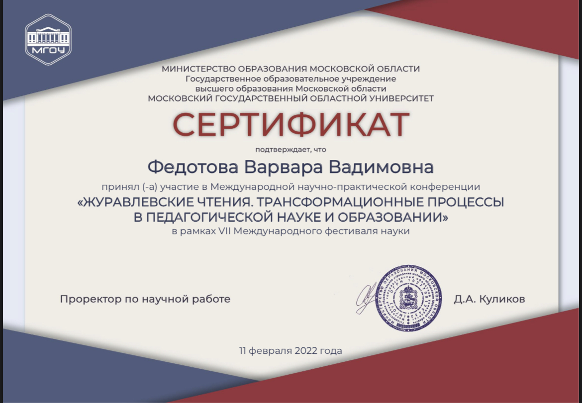 Занимаемся уже 4 месяца с Варварой Вадимовной. Дочь комфортно себя чувствует на уроках, репетитор с ней на одной волне. Видны результаты: ребенок более уверен в сдаче экзамена по английскому языку. Будем дальше заниматься