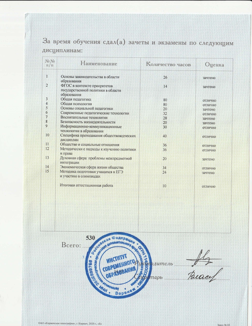 Являюсь частным преподавателем, а также главным юристом Департамента Строительства Правительства Москвы. Преподаю обществознание на протяжении шести лет. За это время со средним баллом «82» около 50 учеников подготовлено к ЕГЭ, а 8 учеников, которые проходили подготовку к ОГЭ сдали экзамен на "отлично". Среди ребят, которые проходили мой курс подготовки к ЕГЭ четверо набрали "100" баллов с учетом того, что по статистике максимального результата на экзамене по обществознанию добиваются менее 1% участников. В 2019 году вышло авторское пособие для подготовки к ЕГЭ по обществознанию. Данное пособие уникально в своём роде, ведь полностью соответствует кодификатору ЕГЭ и методическим рекомендациям ФИПИ. Готовлю учеников к ЕГЭ и ОГЭ по обществознанию, олимпиадам и вступительным испытаниям в МГУ им. Ломоносова и МГЮА им. Кутафина. Регулярно посещаю курсы повышения квалификации у эксперта ЕГЭ по обществознанию. Разрабатываю тесты в формате ЕГЭ, провожу пробные тестирования своих учеников по итогам изучения каждого блока Первое занятие всегда провожу в формате тестирования для определения начального уровня знаний по предмету, выявления пробелов и определения интенсивности занятий. По итогам изучения каждого блока мои ученики пишут пробники в формате ЕГЭ, которые проверяются действующим экспертом ЕГЭ. В случае прохождения годового курса результат 80+ гарантируется преподавателем. (в случае начала занятий позже ноября, либо в случае, когда первоначальный уровень меньше 40 баллов, преподавателем рекомендуется увеличенная интенсивность занятий - 2-3 раза в неделю). В 2022 году вышло 2 издание авторского пособия для подготовки к ЕГЭ по обществознанию.