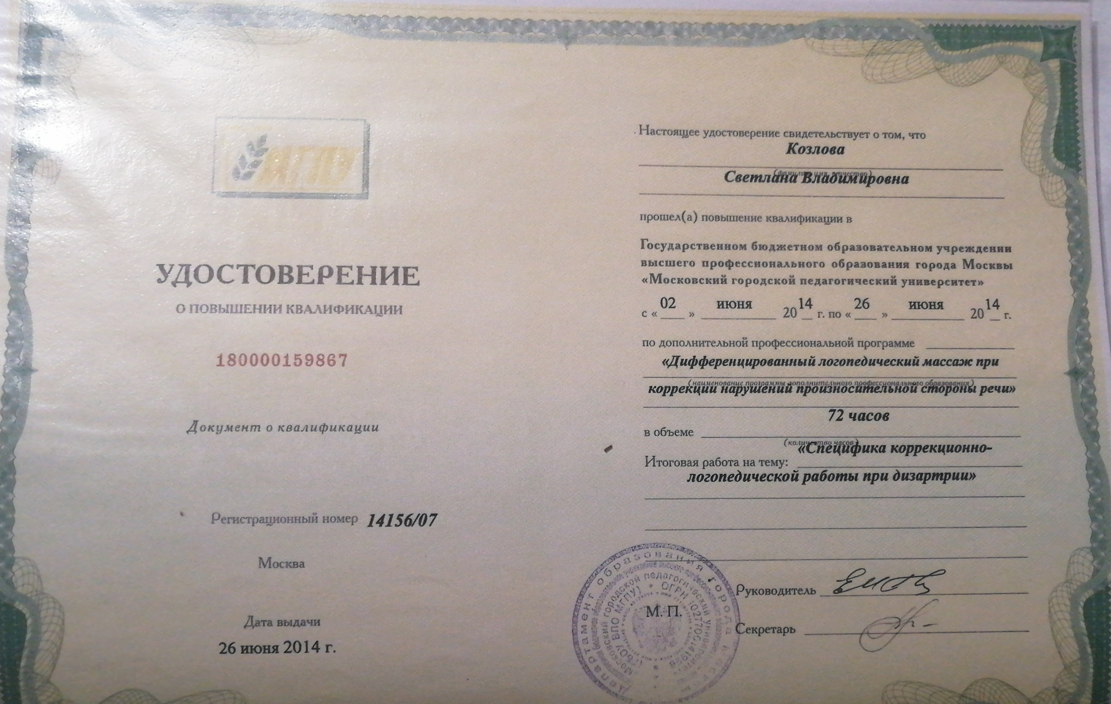 С сентября 1999 года по сентябрь 2019 работала учителем-логопедом в общеобразовательной школе. Далее ушла в самозанятые. Выхожу к ученикам или онлайн. Работаю с дошкольниками 5-6 лет и учениками 1 - 2 классов. Направление работы : нарушение звукопроизношения (дислалия, дизартрия), логопедический массаж; развитие речи, обучение грамоте, чтению; нарушение чтения и письма (дисграфия, дизорфография, дислексия). Выхожу к ученикам в Ломоносовский, Гагаринский, Обручевский, Академический районы