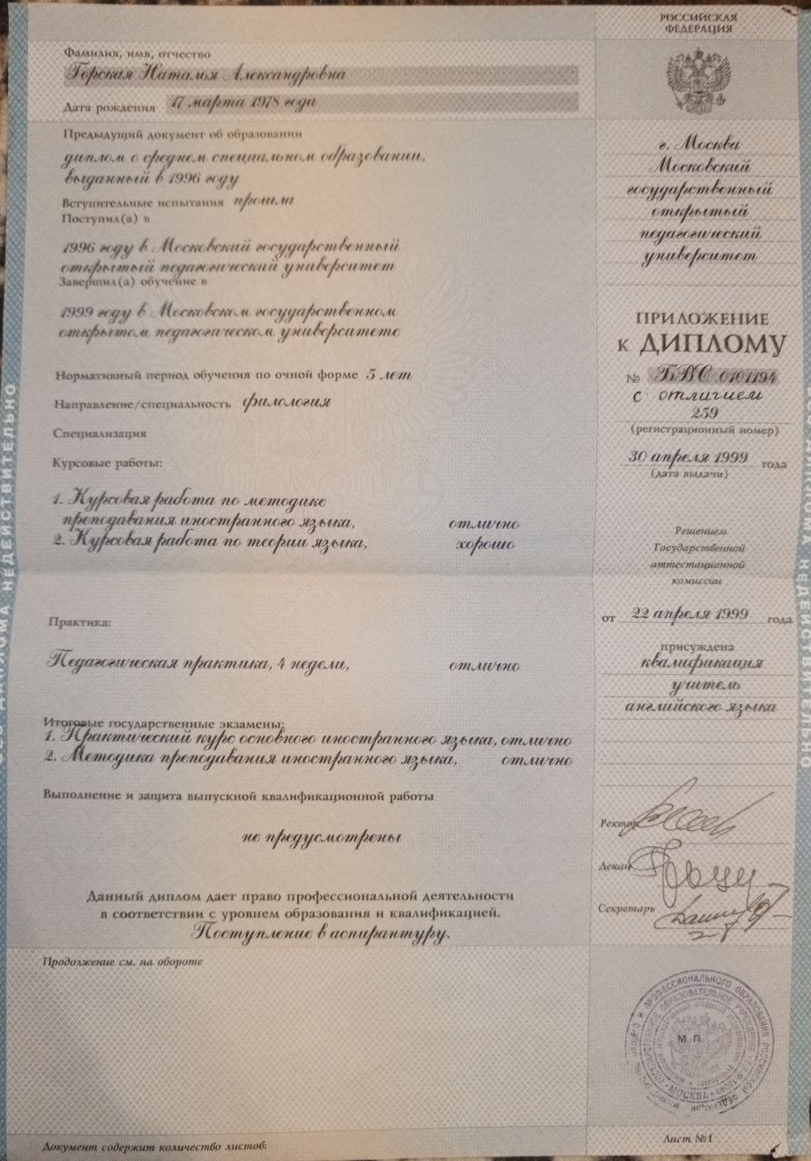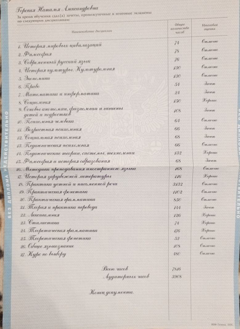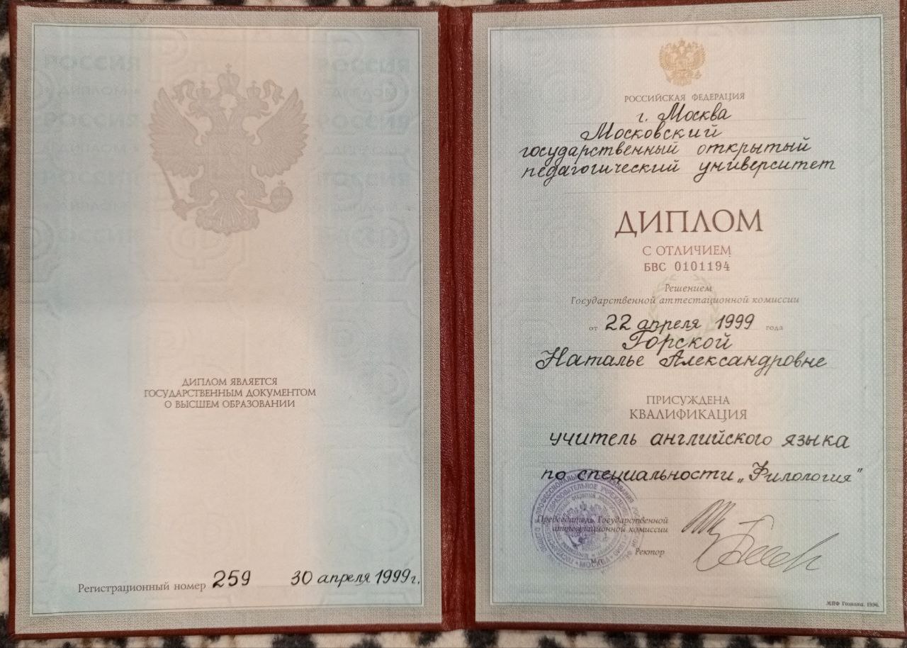 Хотите свободно говорить на английском для успешного общения, карьерного роста или путешествий? Я - Наталья Александровна, дипломированный репетитор с опытом более 30 лет и 1800+ довольными учениками, помогу вам: 👉 Преодолеть языковой барьер. Вы начнете уверенно говорить уже через несколько занятий. 👉 Подготовиться к переговорам и поездкам. Освоите “живой” язык, которым владею на уровне носителя. 👉 Улучшить грамматику и произношение. Поймете времена, избежите ошибок и будете звучать профессионально. 👉 Расширить словарный запас. Изучите бизнес-термины и выражения для уверенного общения. 👉 Повысить навыки письма и чтения. Станете профессионалом в деловой переписке и понимании текстов. 👉 Учиться с интересом. Использую фильмы, игры и интерактивные задания, чтобы обучение стало увлекательным. Что вы получите: ✅ Экономию времени и денег. Быстрая диагностика вашего уровня и адаптация программы под вас. ✅ Полный комплект учебных материалов бесплатно. Экономия до 10 000 рублей на учебниках. Все материалы остаются у вас навсегда. ✅ Прозрачность и стабильность. Фиксированная стоимость занятий — без скрытых сюрпризов. ✅ Уверенность в результате. Вы сможете элегантно выражать свои мысли и производить впечатление. Результат с 0 до А1 за 3 месяца усердной работы у большинства моих учеников! ✅ Пробный урок в подарок. Проверю ваш уровень и предложу индивидуальную программу.