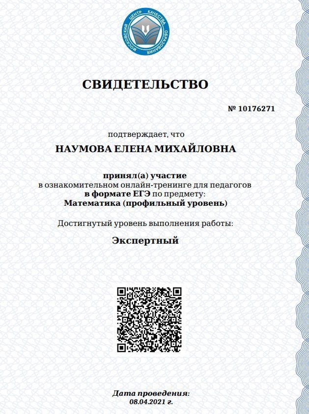 Сын будет сдавать профильный экзамен по математике. И к занятиям с Еленой Михайловной приступили только с этого года. На занятиях не присутствую.