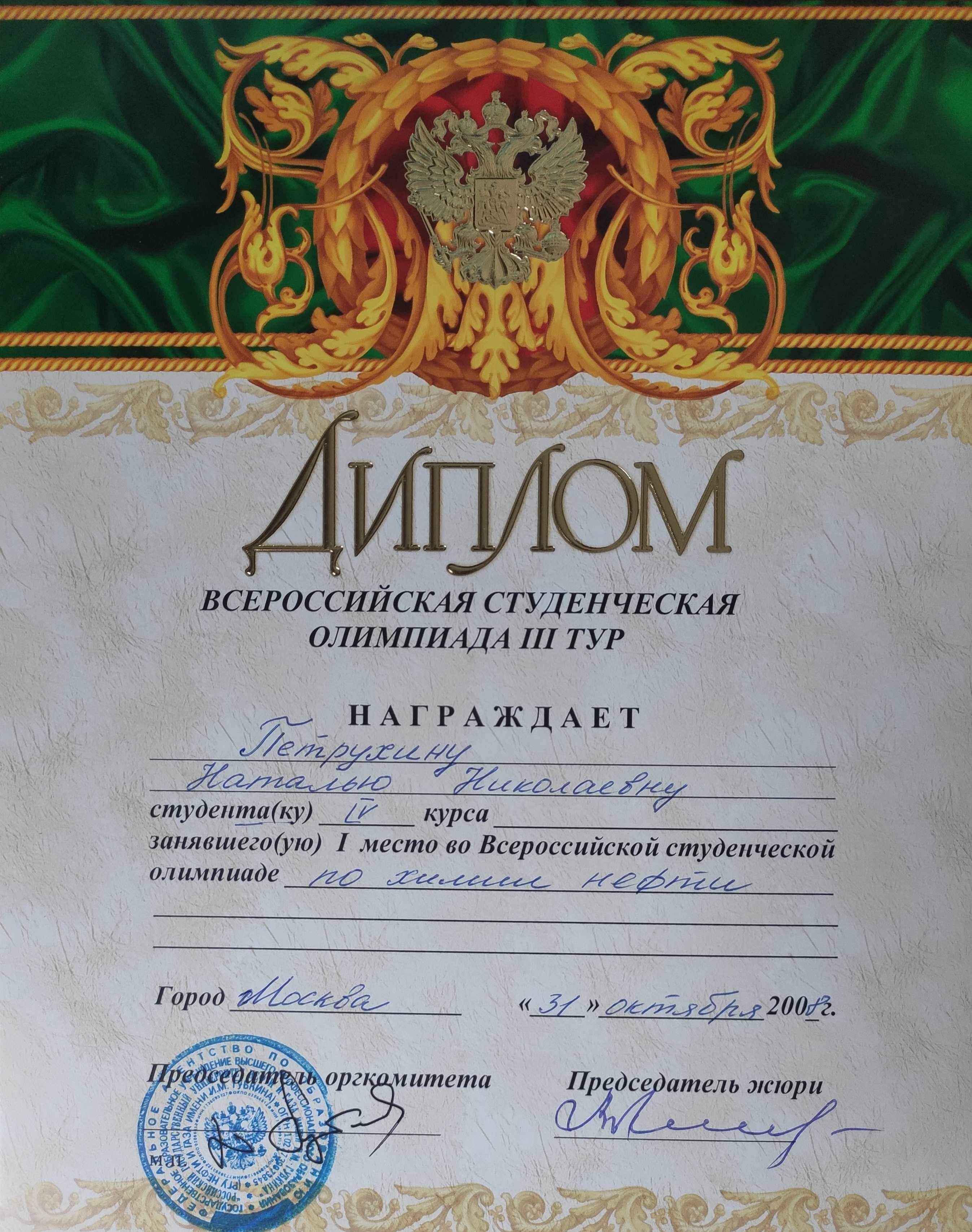Меня зовут Наталья. Предлагаю услуги репетитора по химии. О себе: химия - это моя работа, карьера, научный путь длиной больше чем в полжизни, увлечение. Я - призер Всероссийской олимпиады по химии. Окончила школу с золотой медалью. Факультет химической технологии и экологии РГУ нефти и газа с отличием. Кандидат наук. Сейчас работаю старшим научным сотрудником в Институте нефтехимического синтеза им. А.В. Топчиева РАН. Подготовила более 10 дипломников-нефтехимиков, сейчас выпускаю на защиту аспиранта. С учениками занимаюсь с 2008 года. Умею объяснять "на пальцах", простым бытовым языком так, что даже те, кому химия не близка - понимают и начинают увлекаться. Умею увлечь и заинтересовать ученика, мотивировать на успех. После занятия уделяю время тому, чтобы рассказать о химии в повседневной жизни, медицине, современных научных исследованиях в химии, "кухне" научной работы, что позволяет заинтересовать ученика и от абстракции в тетради перейти к реальной химии в будущей профессии. Требовательна, настойчива. Для меня важна дисциплина, аккуратность и организованность, учу этому школьников. Занимаюсь у себя дома и выезжаю к ученикам (+ 250 руб. за выезд). Онлайн не занимаюсь и считаю это малоэффективным в обучении школьников. Набираю учеников на 2023-2024 учебный год (с сентября).