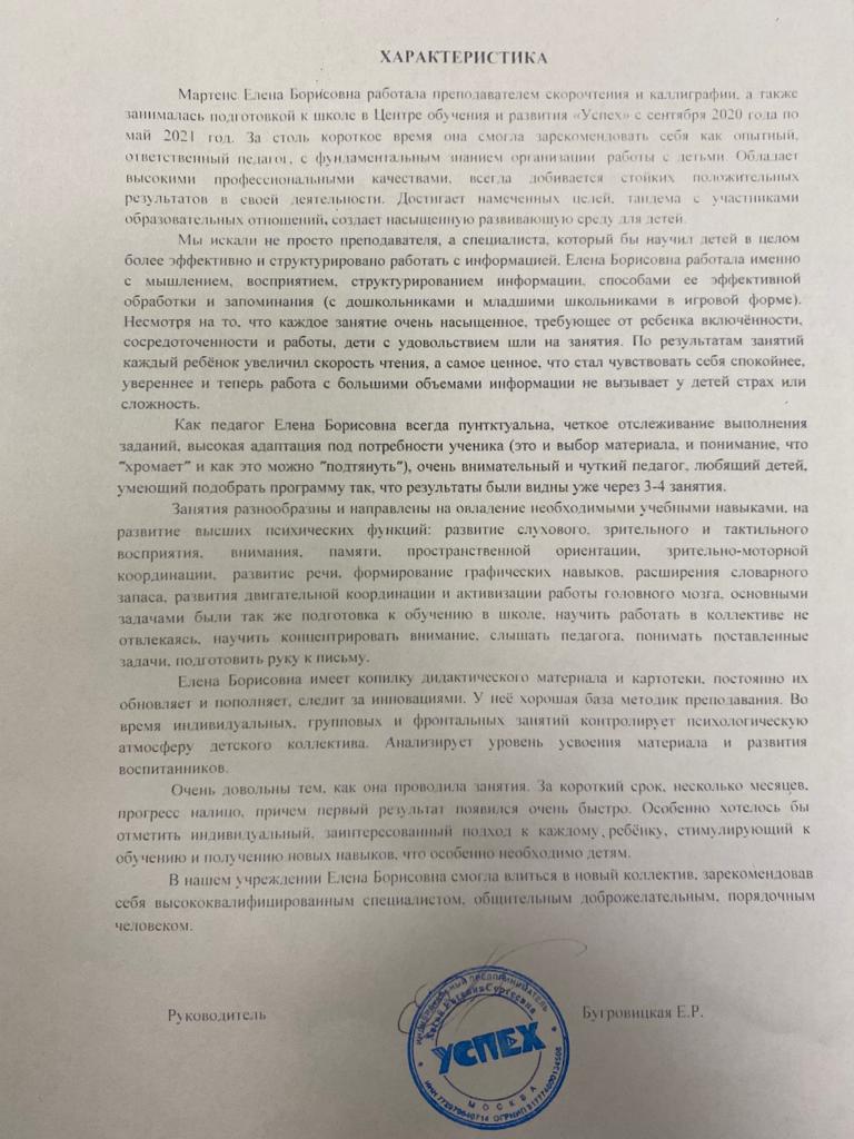 Начали подготовку к школе с Еленой Борисовной. Учимся с ней читать и писать. Ребенок занимается с удовольствием, не знаю, как ей это удается! Она действительно профессионал в своем деле. Рекомендую от души!